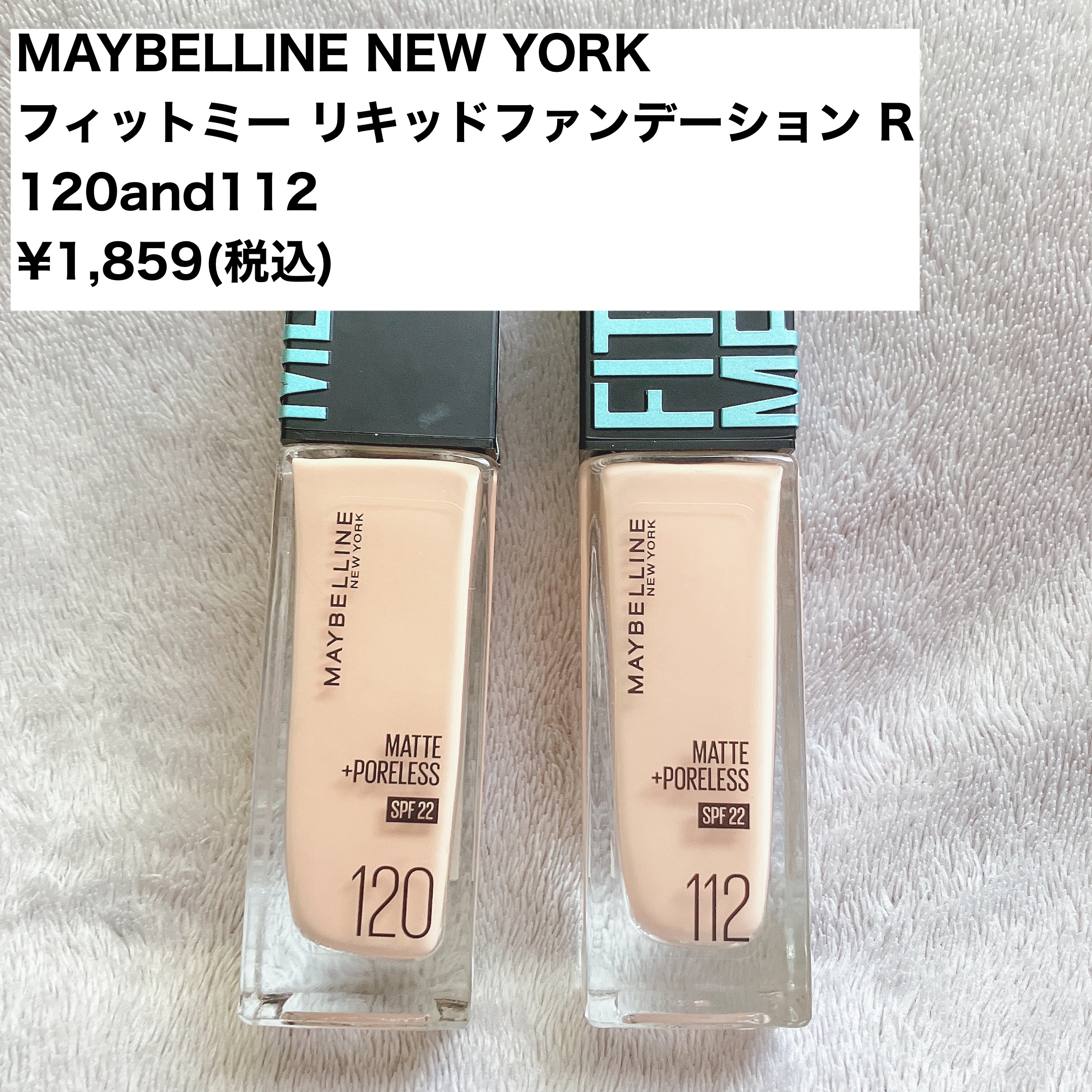 カラバリえぐ!!MAYBELLINENEWYORKフィットミーリキッドファンデーションR112、120ルミマットファンデ人気だけど、、、、フィットミーも負けてないのよ!!軽いつけ心地で肌にぴったり密着し、崩れにくいのがポイント!!毛穴やくすみ...