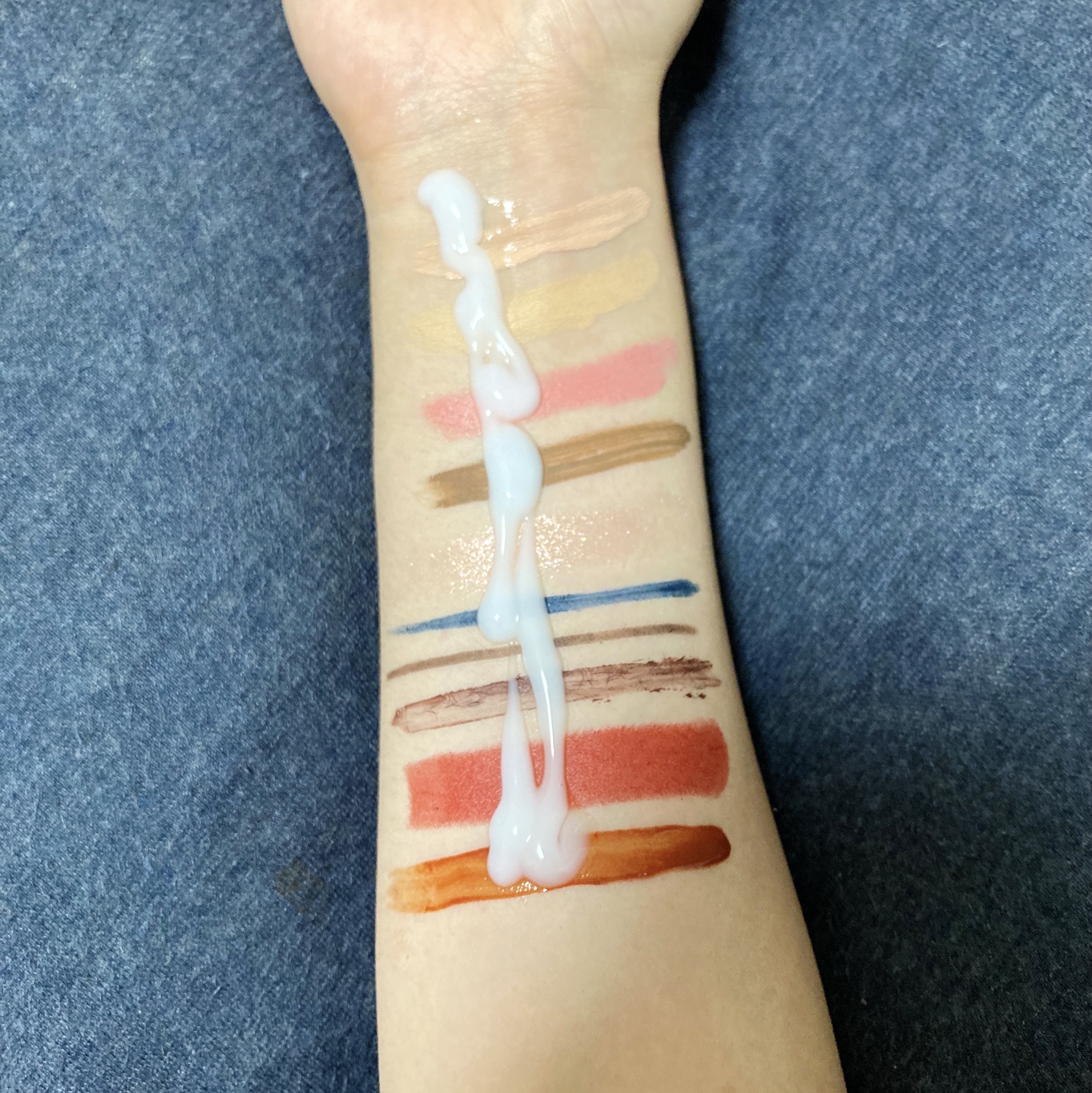 着け心地が軽く厚塗り感が無い 日焼け止めと下地兼用で使える 衣類に着きにくい 着け心地が軽く、ベタつきのない日焼け止めをお探しの方 お勧め 色は着いてるがシアーというか伸ばしてもピンクみやベージュがガッツリ出ないので首やデコルテ等の体への使用がお勧めかな