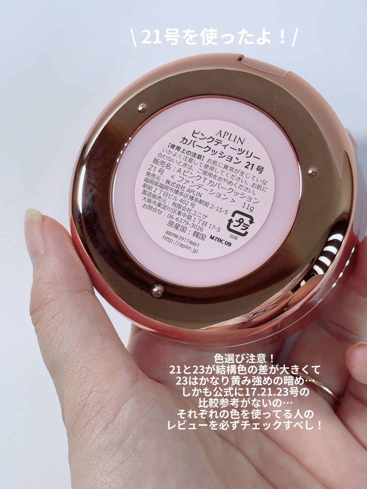 混合肌や敏感肌におすすめのピンクティーツリーカバープライマークッション カラーは『21号』を使用しました! SPF50+ PA++++の高UVカットのクッションファンデーション うるおい感がありながら、ピタッと肌に密着してくれるテクスチャ