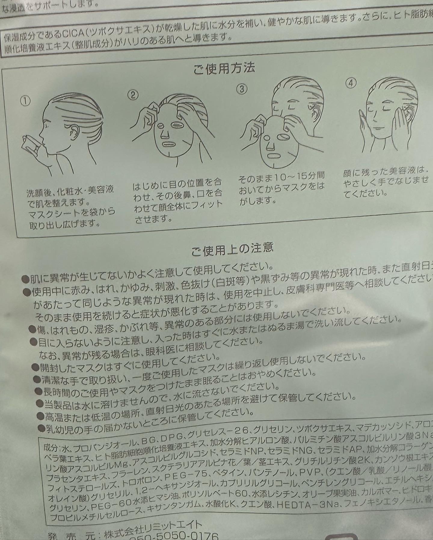 シカ(cica)×高純度ヒト幹細胞培養液を厳選配合✨ 世界唯一の高級シート素材「ベンリーゼ」を使用!! 肌にピッタリと密着するシートで、高保湿💕 美容液がたっぷりで、パックの杜仲で乾くことはなかった!! 美容液はとろみのあるテクスチャーで、朝までしっとり続く🙆🏻♀️ 密着するシートマスクで、しっとりもちもち仕上がり🥺✨ 美容液がたっぷりで、しっとり潤う🫧 1枚ずつ個包装なので衛生的に使えて、旅行にも🙆🏻♀️