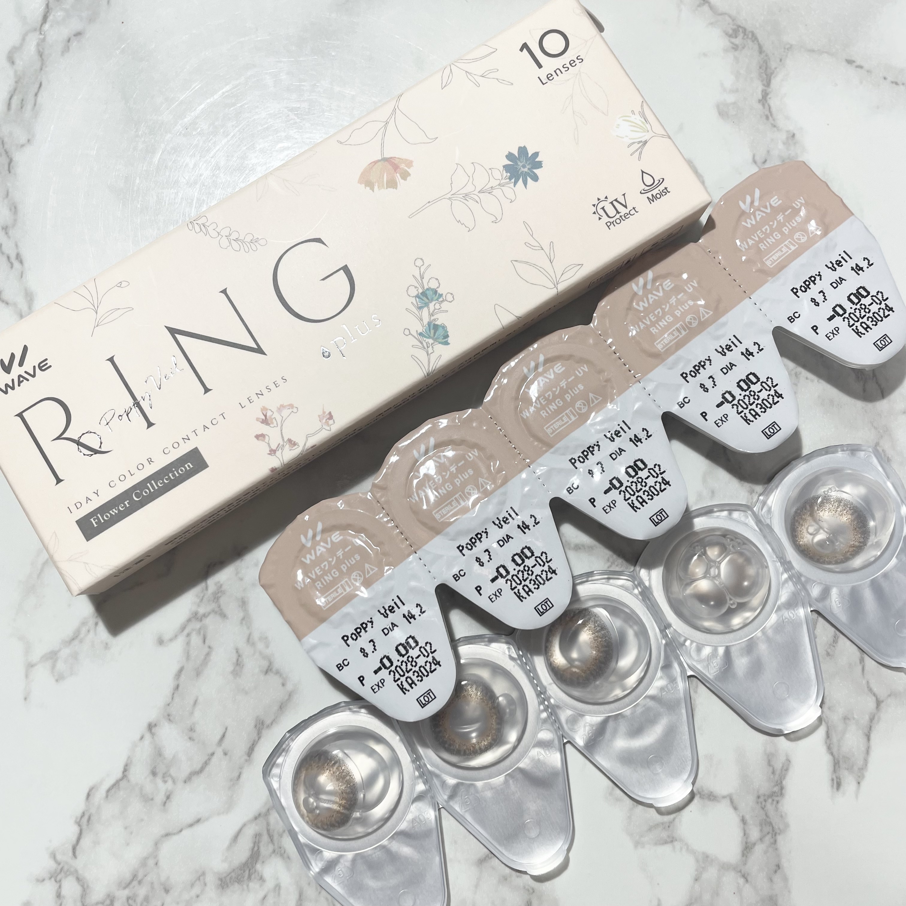 10枚入り1000円以下で買える色素薄い系プチプラカラコン♡瞳に彩りを与え、ちょっとだけ瞳を変えるシンプルで日常使いしやすいカラコン【WAVEワンデーUVリングplusフラワーコレクション】☾MimosaVeil(ミモザベール)DIA...