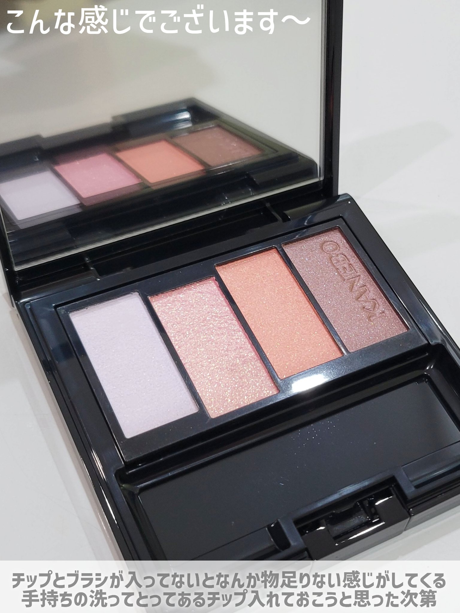 全体のローズ感と粉質もたまらなくいいんですが 左下のハイライトカラー?パールの粉が すんごい涙袋にいいんですよ… パーンとめちゃくちゃ涙袋盛れるけど、 ほんのりピンクがかった白みベージュなので 平成ギャルみたいになるわけではない…と思う ほんとこのハイライトカラーが涙袋に良すぎて いつかここだけ底見えする説…