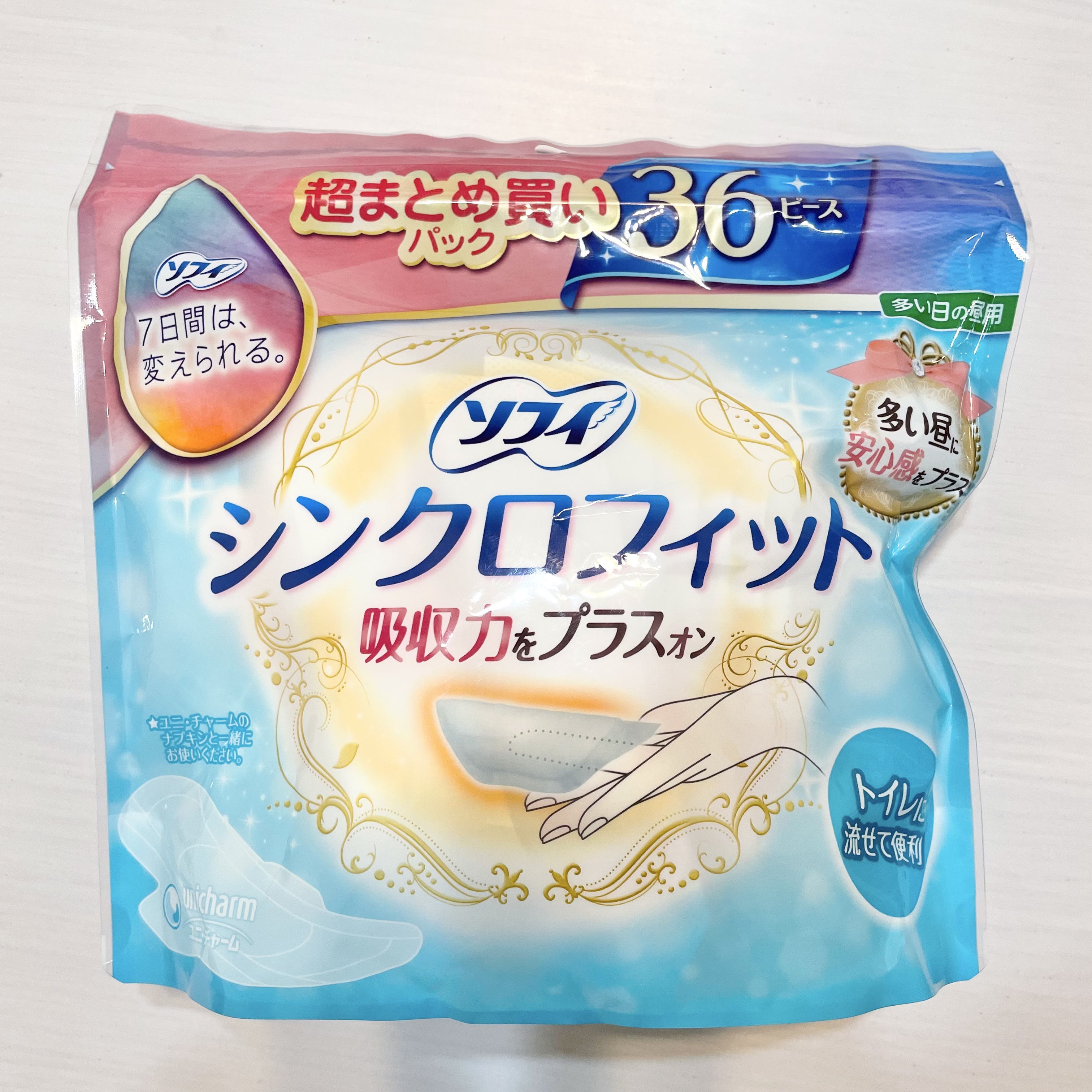 仕事で手が開かない時や多い日の就寝時 いい仕事してくれます✨ こちらとアクティブな時に使うナプキンがあると経血がもれる心配がぐんと減るので安心します😮💨 救世主✨ ソフィ シンクロフィット 多い日の昼用