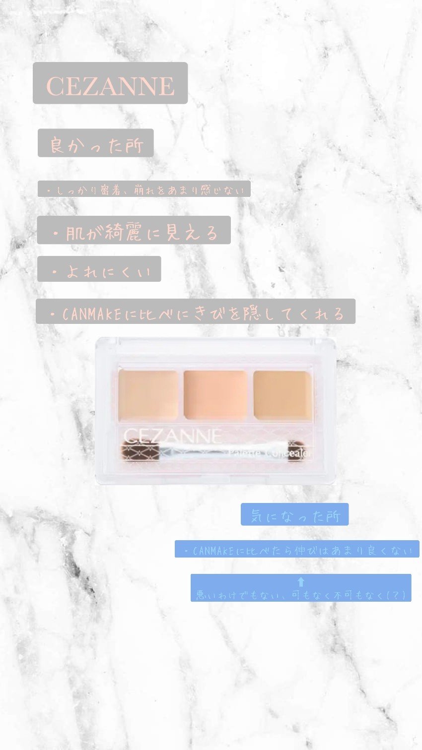 個人的におすすめするのはCEZANNEです⸜ ⸜♡⸝ ⸝ 理由としては浮きにくいこと、カバー力がある事が大きいです。 ただパッケージはやはりCANMAKEの方可愛らしいです🤙🏻💕︎