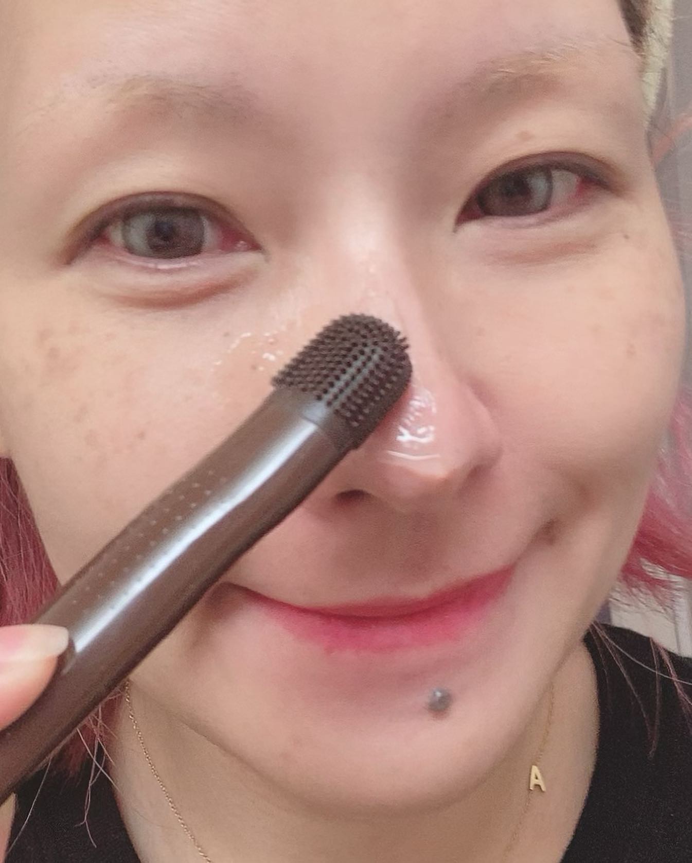 ジェルは粘度の高い温感ジェルです。こっくりとしたテクスチャーで肌にのせてなじませるとじんわり温かくなってきます。 そこをマッサージブラシでくるくるしながらマッサージしていきます。温かさもありとても気持ち良いです☺️ 保湿用の美容液もセットになっているのが嬉しいですね♡ 美容液はトロッとしたテクスチャーで、伸びも良くお肌がしっとりとするような使い心地です。 週一の毛穴ケアとして取り入れて、毛穴の目立たない肌目指して頑張ります🙌