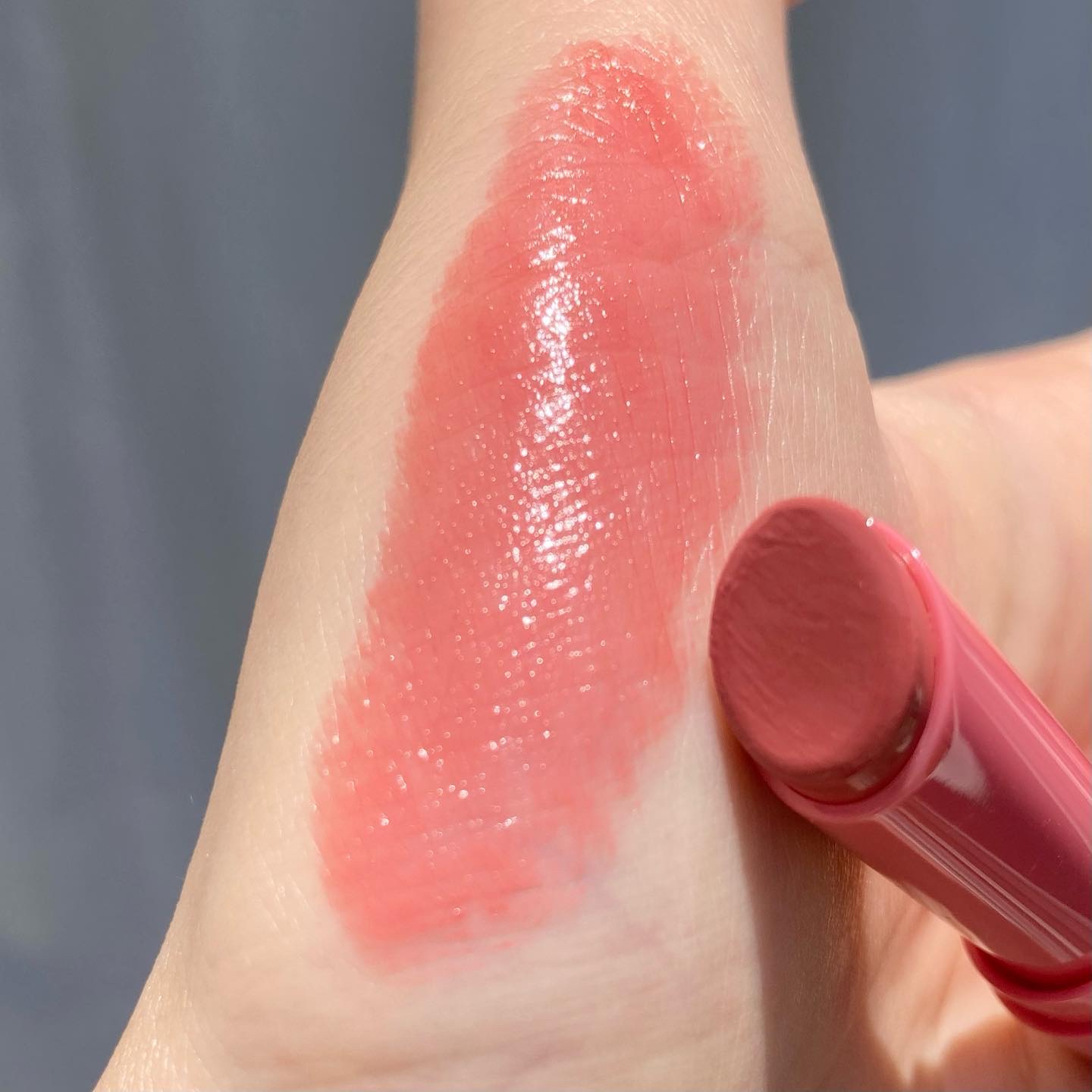 思ったより赤みのあるピンクで血色感があってつけやすくて可愛い🌸思ったより青みは強くなくコーラルっぽさも感じるのでPC関係なくナチュラルに使えそう☺️ モーヴ感強くて顔色悪くなるかな?と思ったけど塗ってみたらマイルドなオレンジブラウンのように発色した🍊ブラウンリップほど濃くないのでブルベさんでも使えるニュアンスブラウン🤎 とにかくちゅるるんとした唇になれるリップ🥹 食事をしたら取れちゃう感じだけど、塗り直しすれば問題なし🙆♀️ とにかくカラーとパケがかわいい🧚