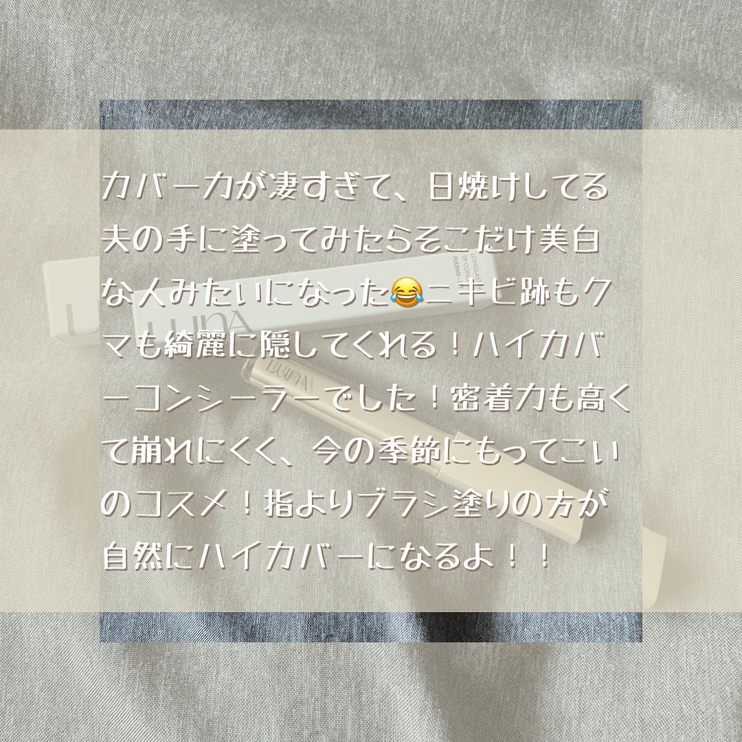 韓国コスメのコンシーラーといえば!のひとつに入るLUNAのコンシーラーꔛෆ 私が使ったフィクシングフィットはサラサラが長時間キープするタイプ🍃 高密着なのにぼかしやすいからしっかりカバーしながら厚塗り感を感じさせないメイクができる! 仕上がりはピタッと密着してサラサラ✨️ 崩れやすい小鼻の赤みなんかもいつもより綺麗に残ってた🥳