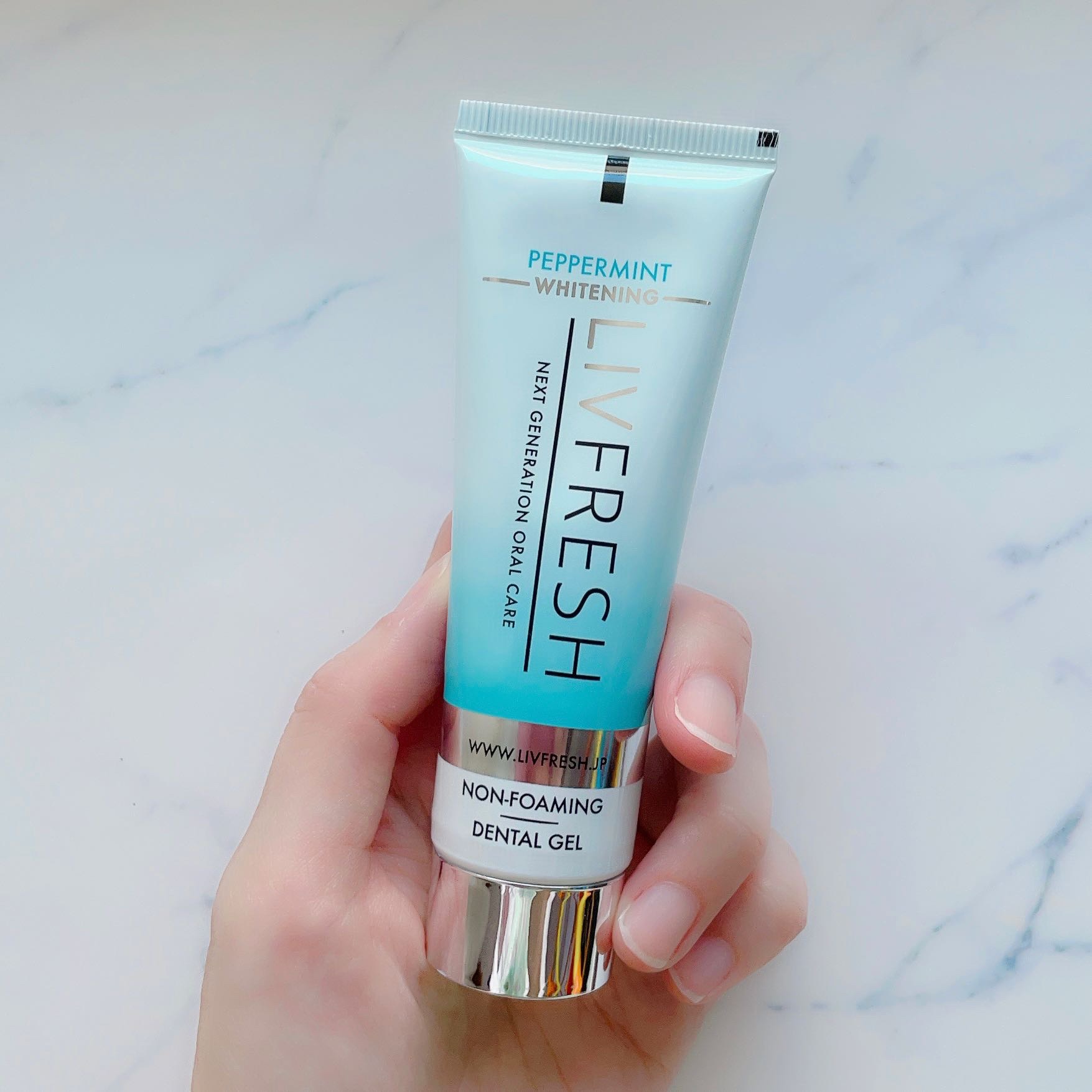 お口の美容にもこだわって「ツヤ歯だ」をコンセプトにしているそうです。 青いジェル状でペパーミントの香味なので、爽やかですっきりした使用感。 不思議なプルプルしたジェル(発泡剤無配合)で、泡立たないがゆえ隅々まで磨けます。 ブラッシング効果によりバイオフィルム(汚れ)を除去し、ブラッシング効果により歯をホワイトニングする歯みがきジェルです。 マスクを外す機会が増えると、自分の口臭が気になりやすいからこそ、リブフレッシュオーラルジェルでホームケアができるのが良いです。 ジェルだから泡立たないけど、しっかり歯みがきができます。 無研磨・無発泡・無殺菌剤といった余分なものが入っていないシンプル処方なので、本当に落としたいものだけ落としてくれます。
