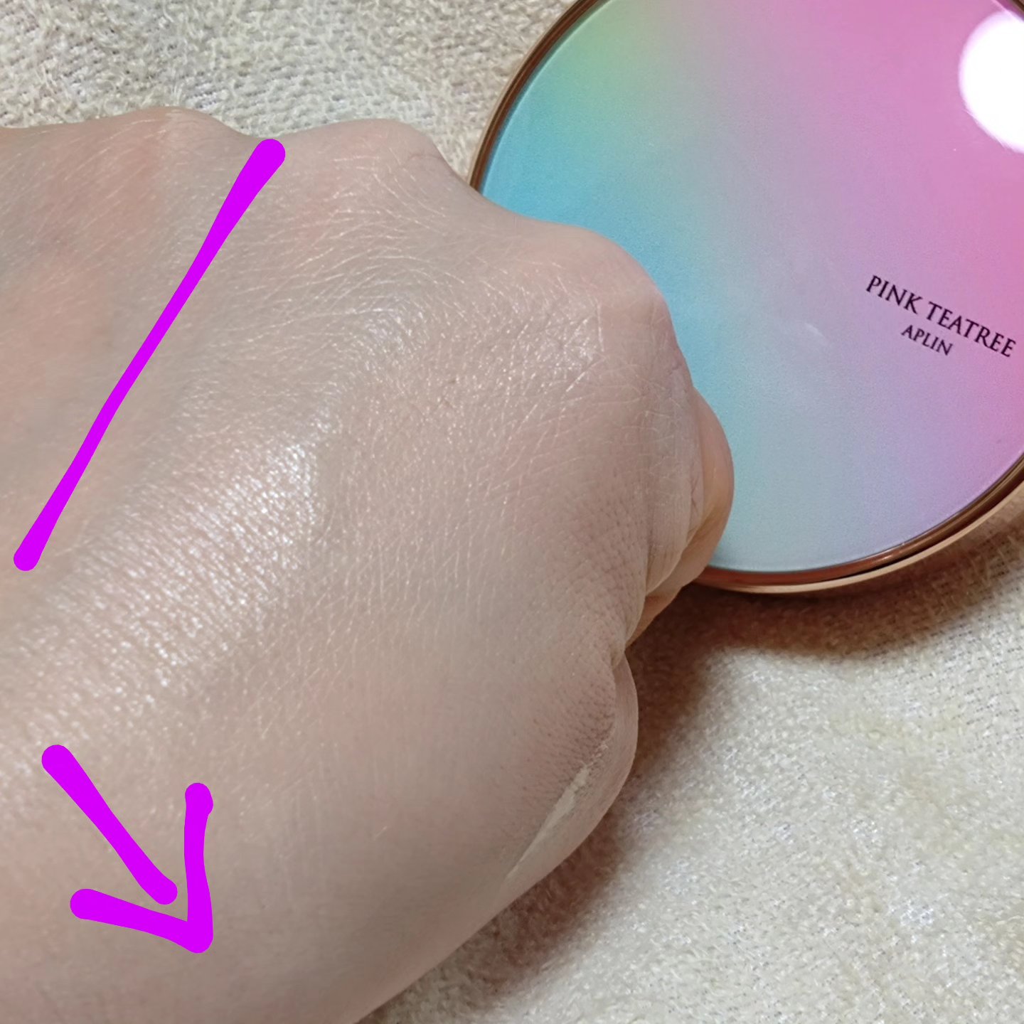 APLIN ピンクティーツリーカバークッション 21号ライトベージュ 2,490円(税込) 少量でよく伸びてハイカバー! 赤みやくすみをしっかりカバ一できるのに、厚塗り感のないなめらかな仕上がり♡ ハイカバーなのにナチュラルなツヤ感とサラッとしつつ、乾燥崩れしにくい仕上がりに感動します!!