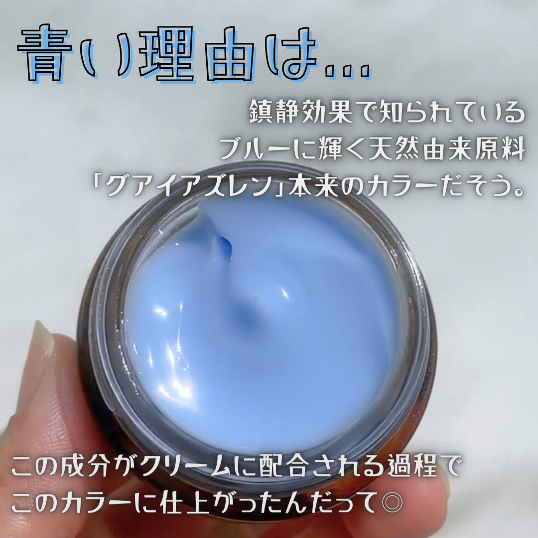 | 植物成分のグアイアズレンの色の綺麗な青色のクリーム。敏感な肌が感じる多様な刺激をケア | 詳細を見る | ||