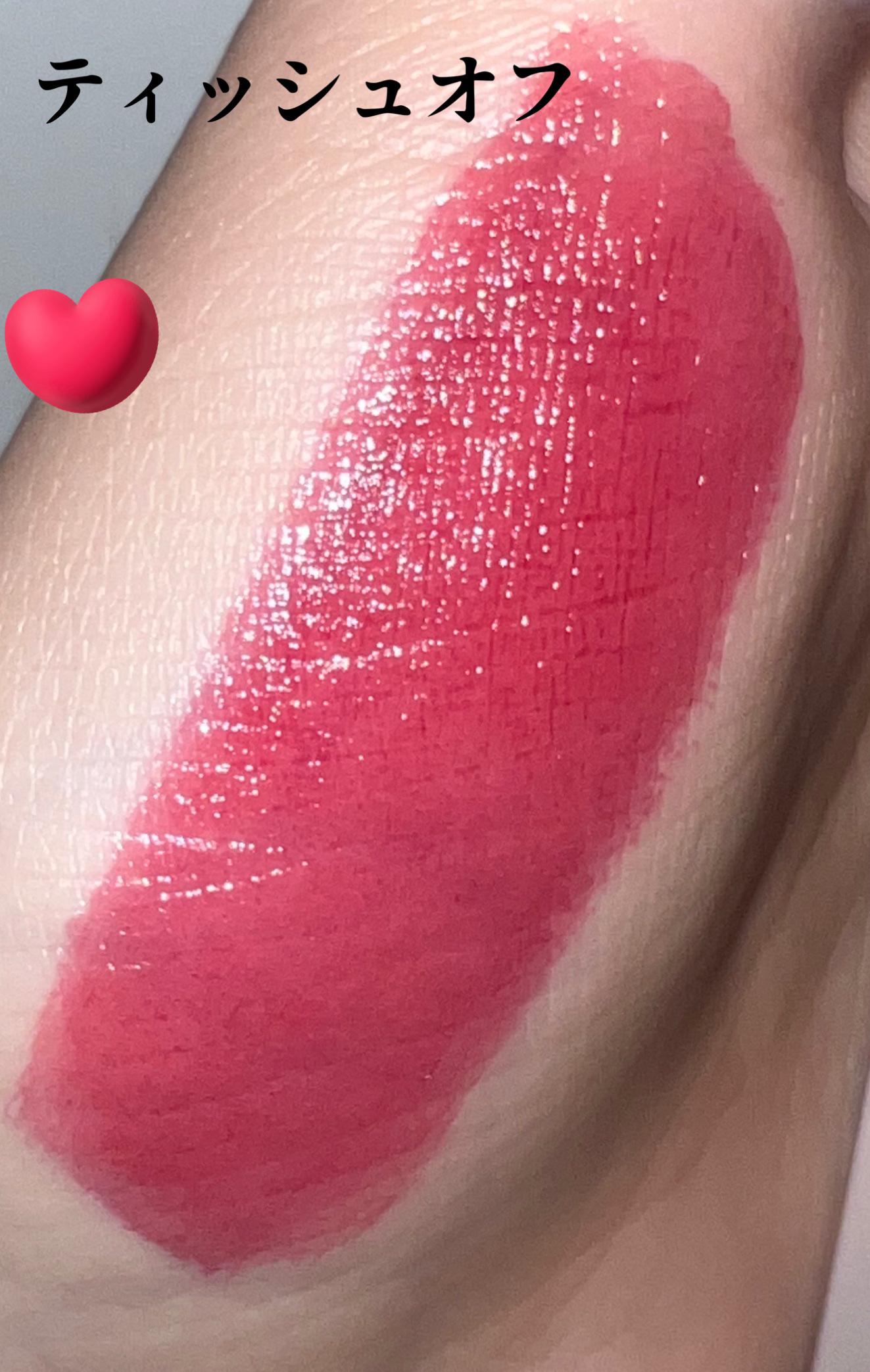 全体的に肌馴染みの良い色味で使いやすい!テクスチャーは硬すぎず柔らかすぎずといった感じで塗り心地も良いです🙆♀️ ティッシュオフ後も抜群の色持ちでマスクへの色移りも少なめでした。落ち方は内側に残るような感じで比較的綺麗です。ふわっと色づくような発色が続くのでいい感じ!!こなれ感も出ます! 質感は限りなくマット寄りのツヤ系といった印象💄 ほんの少しだけ乾燥が気になるかもしれません。 現時点ではバズったリップモンスターやネンマクフェイクルージュより店舗に在庫が残っていて入手しやすいので狙いどき!! パッケージはネンマクフェイクルージュと同じ形で水色とシルバー。爽やかで可愛い上、黒いパッケージのリップたちより比較的指紋が目立ちにくいところもいい感じです💙🤍 カラー展開が豊富なのも良い!