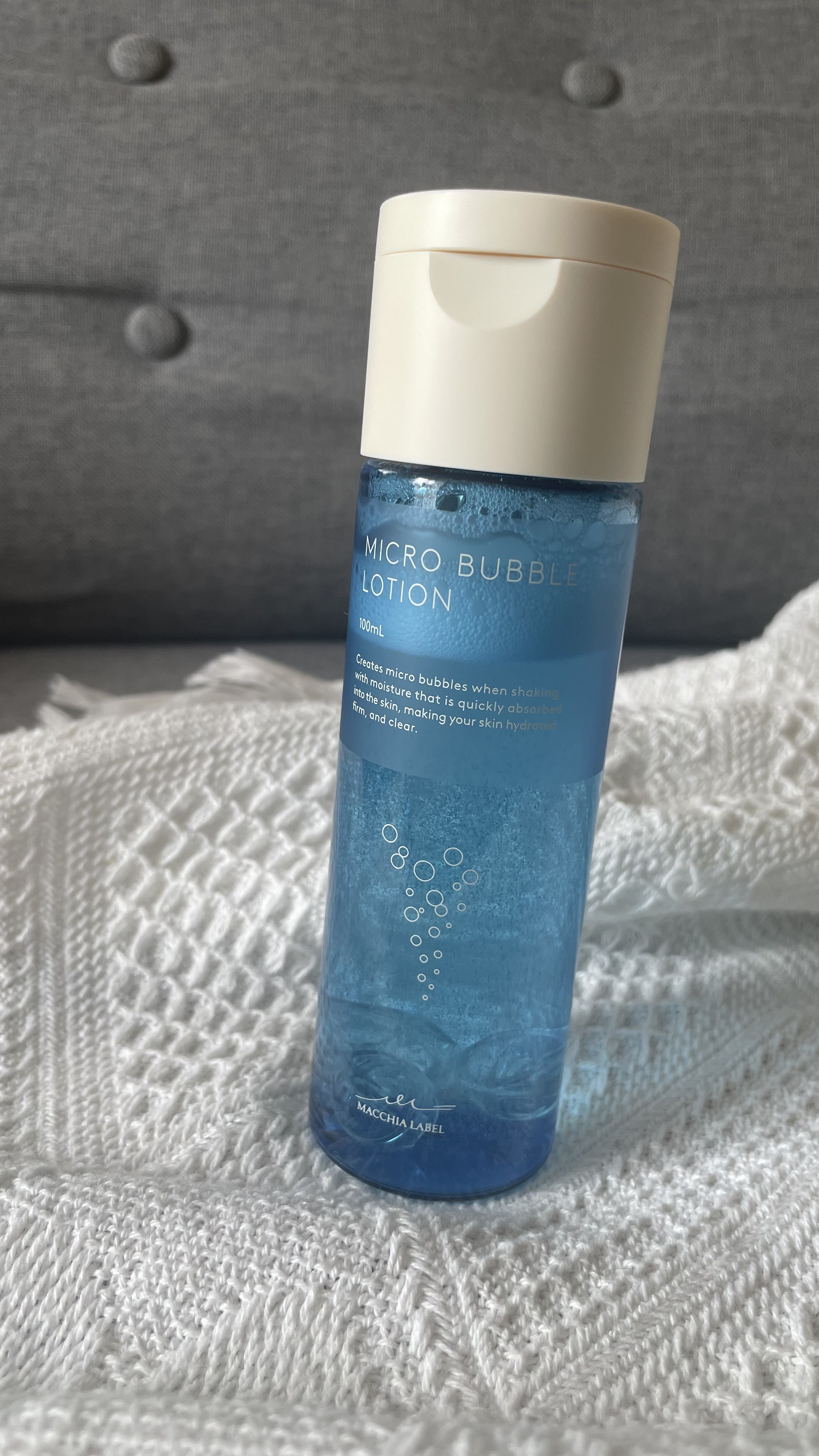 振ってファインバブルを発生させる攪拌ボール入りのボトルが印象的🫧 目に見えない程の微細泡で浸透力*UPも期待されてる🆙 ほんの少しトロミのあるテクスチャーで肌馴染みも良い◎