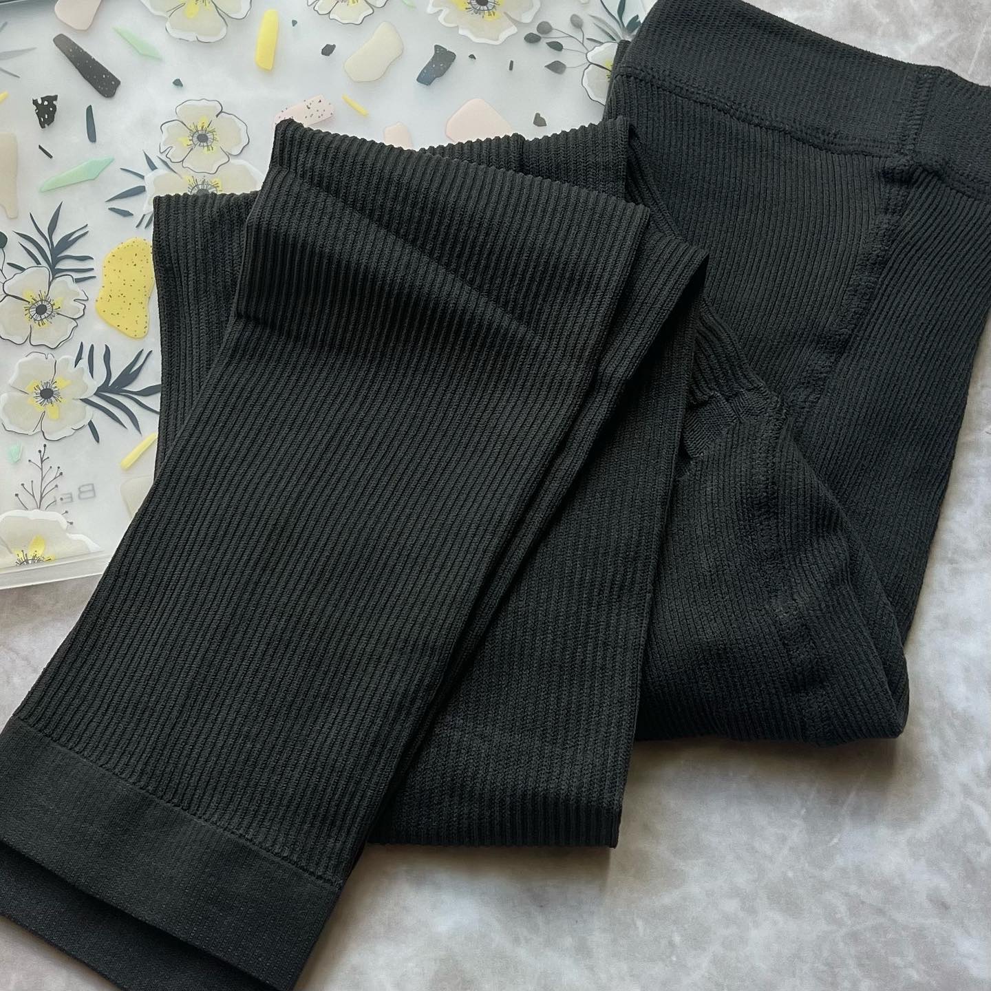 見た目はデニムなのに、強着圧❣️ これ1枚で、デニムスタイルと着圧ケアが完結するレギンスです✨ キュッと引き締まる感じですが、キツさは気になりません✨ 足全体を引き締め、骨盤周りも引き締めて、お腹をしっかりおさえてくれる着圧構造になっているそうです。