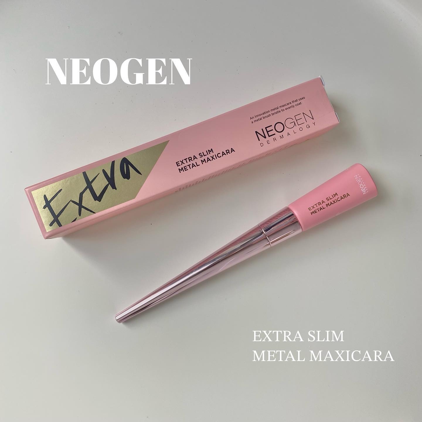 NEOGENの人気マスカラがリニューアルして登場🪐꙳☄︎ 以前と比べて持ち手部分が少し短くなりコンパクトになったので持ち運びしやすいサイズに👜 精密設計ブラシでまつ毛一本一本を根本から繊細カールを作ってくれる🪄 普通のブラシと比べるとダマができづらく、極細ブラシなので下まつ毛にも塗りやすい🫶🏻 メタルブラシなので拭き取りができ衛生的に使えるところもポイント🫧