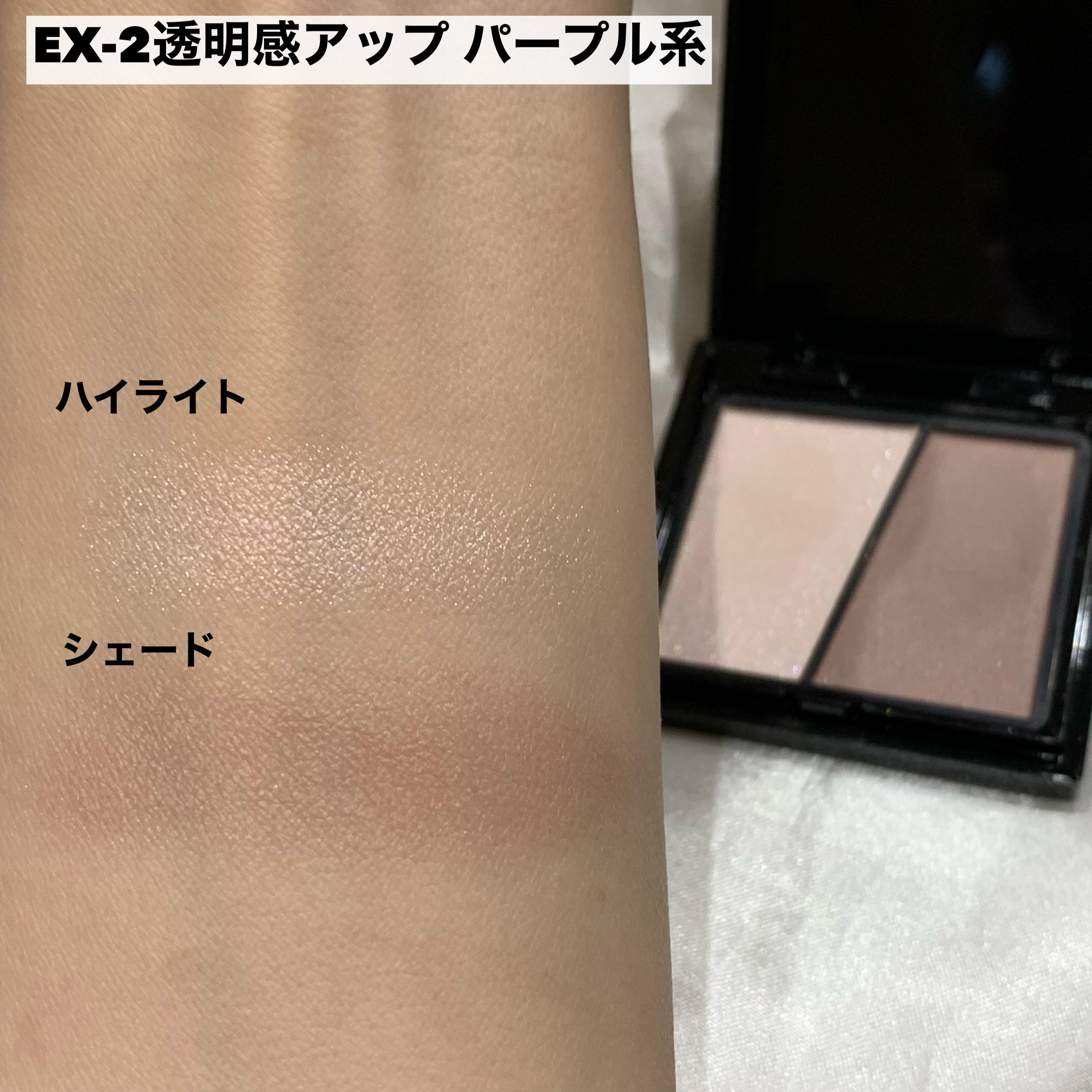 - 濡れツヤハイライト&ニュアンスカラーシェードでくすみにくく明るい小顔印象に骨格リメイク* ■陰影を引き立てる濡れツヤハイライト:粉感の少ないしっとりした質感と繊細なパール感でツヤ・立体感を仕込む ■肌をきれいに見せるニュアンスカラーシェード:あえて彩度を抑えたグレイッシュカラーで浮かずに自然な陰影を演出 ■全3種 EXー1:グレー系 EXー2:パープル系 EXー3:コーラルブラウン系 *メイクアップ効果