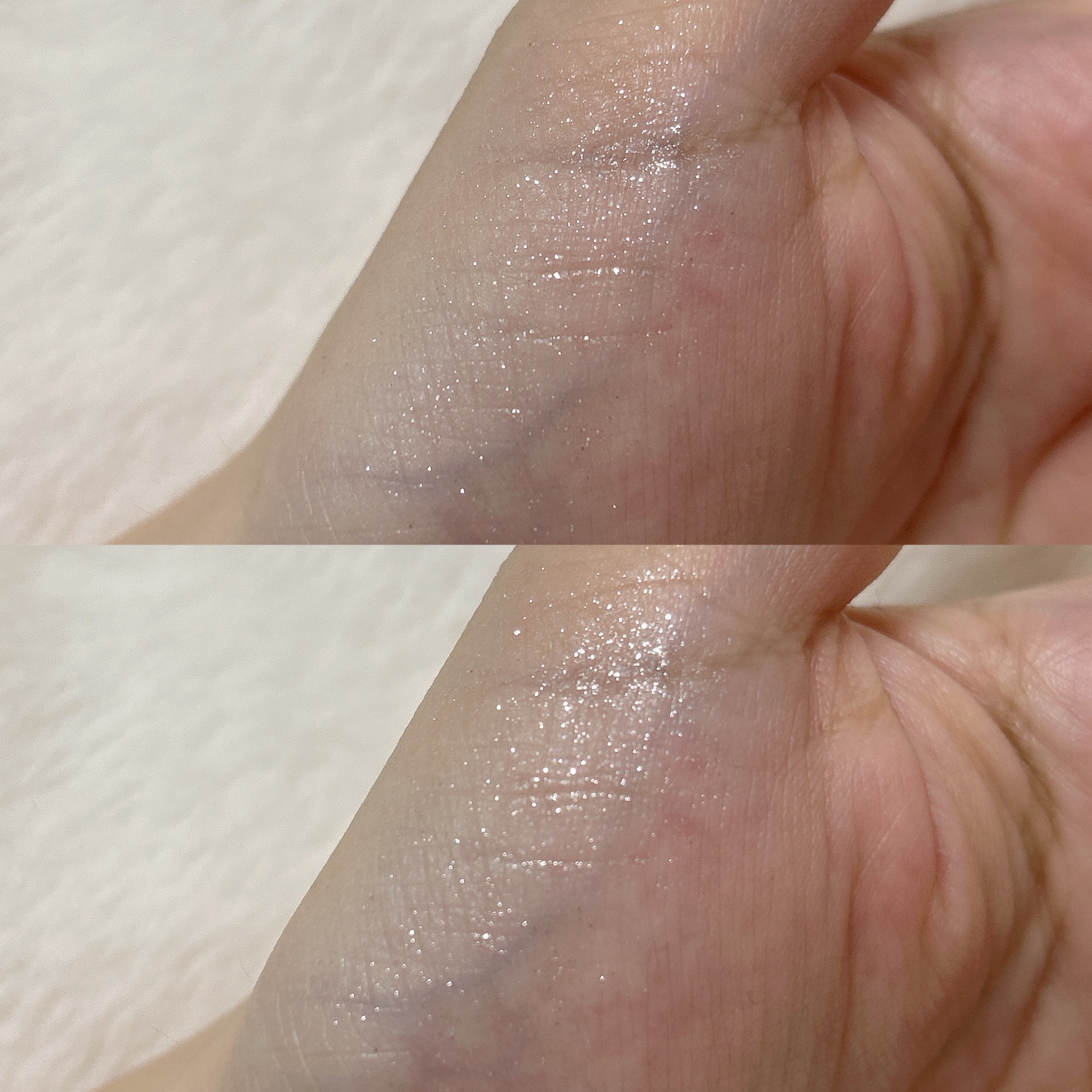 リラドロップは透明感あるプラムピンクベースにキラッキラの多色ラメが可愛すぎる♡︎( ´ ` ) ティヤムシャンパンはベースのシャンパンベージュにラメもシャンパンカラーでキラキラ どちらもとっても可愛いです♥︎