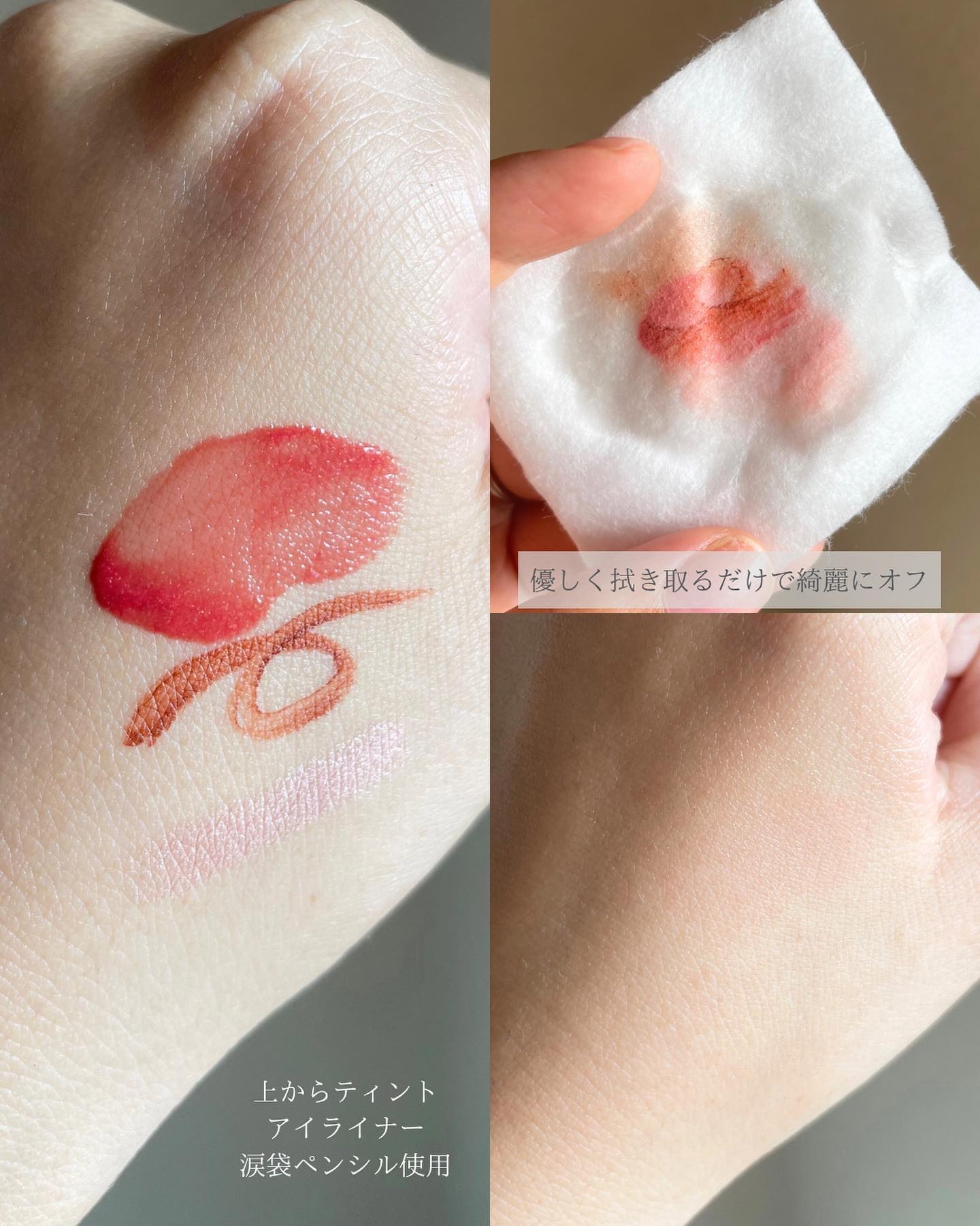 肌なじみ○ブラック耐久アイライナー ブランド初となるリキッドコントロール機能を採用してて、目尻までかすれず、一気に描けるなめらかな描き心地♡ ウォータープルーフタイプのマスカラやアイライナー、ティントリップまでこすらず落とす2層式タイプのポイントメイクリムーバー♡