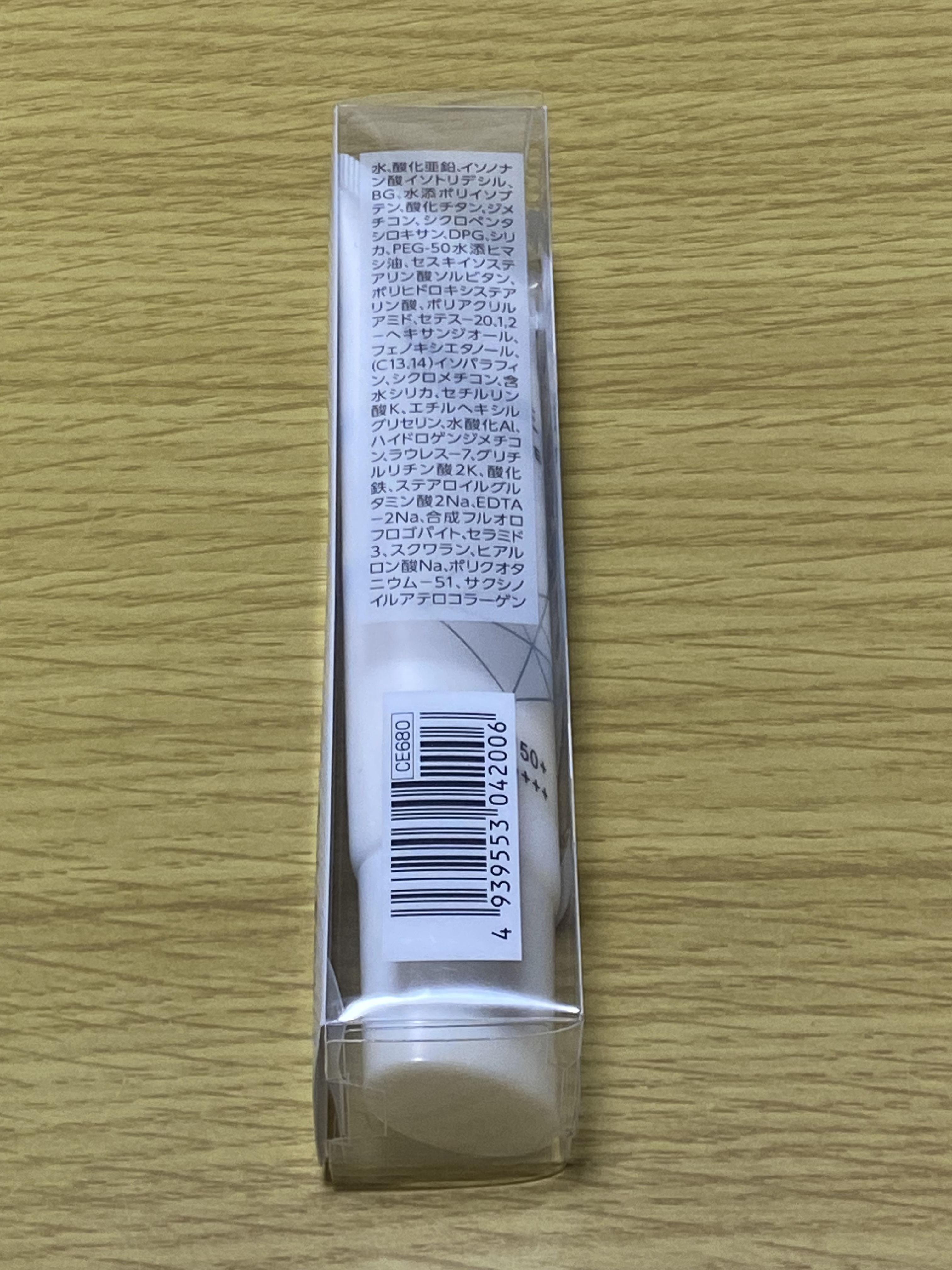 - <ホワイト> 水、酸化亜鉛、イソノナン酸イソトリデシル、BG、水添ポリイソブテン、酸化チタン、ジメチコン、シクロペンタシロキサン、DPG、シリカ、PEG-50水添ヒマシ油、セスキイソステアリン酸ソルビタン、ポリヒドロキシステアリン酸、ポリアクリルアミド、セテス-20、1,2-ヘキサンジオール、フェノキシエタノール、(C13,14)イソパラフィン、シクロメチコン、含水シリカ、セチルリン酸K、エチルヘキシルグリセリン、水酸化Al、ハイドロゲンジメチコン、ラウレス-7、グリチルリチン酸2K、酸化鉄、ステアロイルグルタミン酸2Na、EDTA-2Na、合成フルオロフロゴパイト、セラミド3、スクワラン、ヒアルロン酸Na、ポリクオタニウム-51、サクシノイルアテロコラーゲン <ピンク> 水、酸化亜鉛、イソノナン酸イソトリデシル、BG、水添ポリイソブテン、酸化チタン、ジメチコン、シクロペンタシロキサン、DPG、ヒアルロン酸Na、セラミド3、サクシノイルアテロコラーゲン、ポリクオタニウム-51、スクワラン、合成フルオロフロゴパイト、シリカ、PEG-50水添ヒマシ油、セスキイソステアリン酸ソルビタン、ポリヒドロキシステアリン酸、ポリアクリルアミド、セテス-20、(C13,14)イソパラフィン、シクロメチコン、含水シリカ、セチルリン酸K、酸化鉄、水酸化Al、ハイドロゲンジメチコン、ラウレス-7、グリチルリチン酸2K、ステアロイルグルタミン酸2Na、EDTA-2Na、エチルヘキシルグリセリン、1,2-ヘキサンジオール、フェノキシエタノール