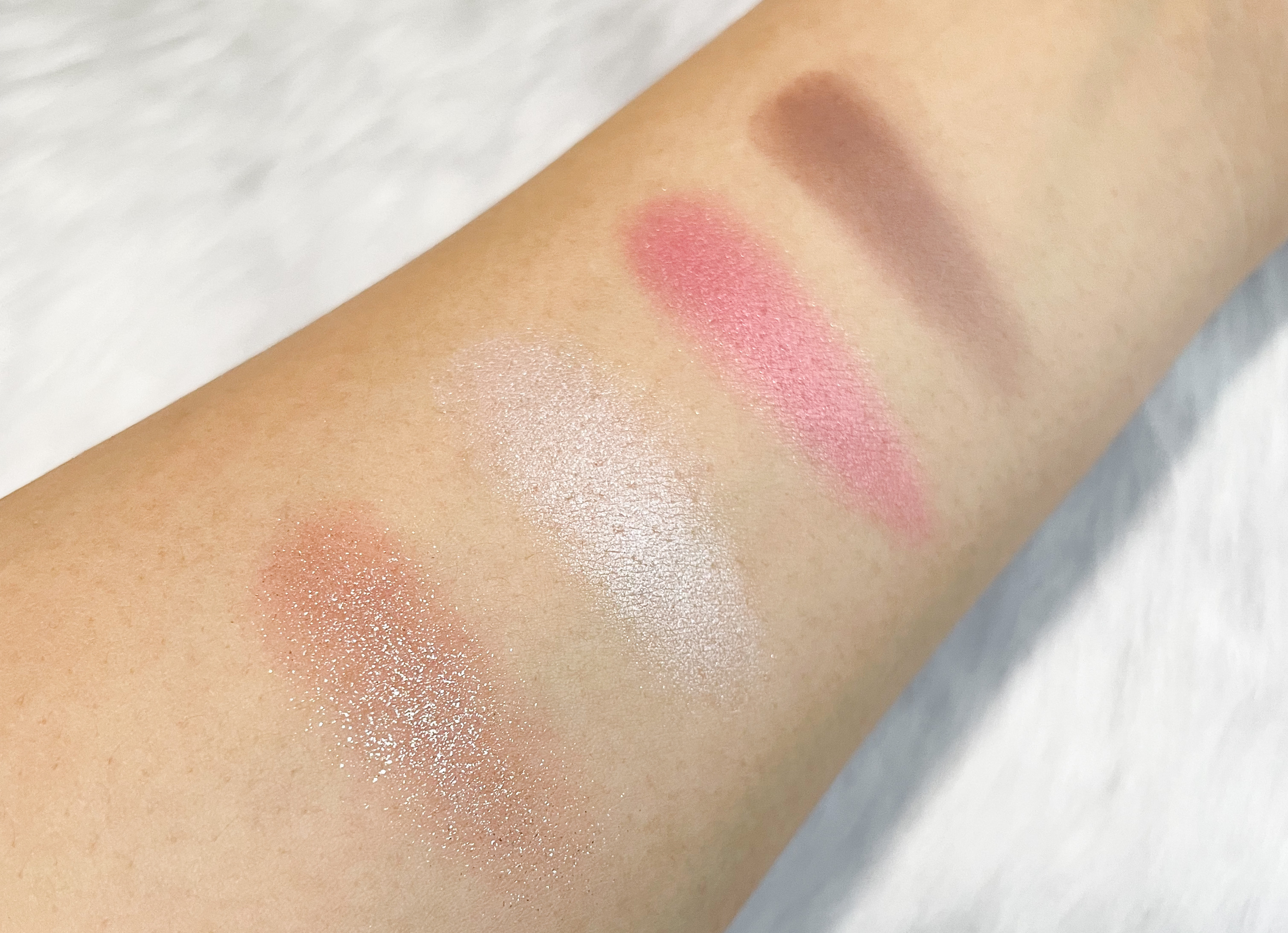 粉質がとてもやわらかく粒子が細かいので、肌にも馴染みやすそう💕 手持ちのETVOSのグリッターモーヴとも比較してみました! 左下同士が、質感は違えど色みが似てました🤭