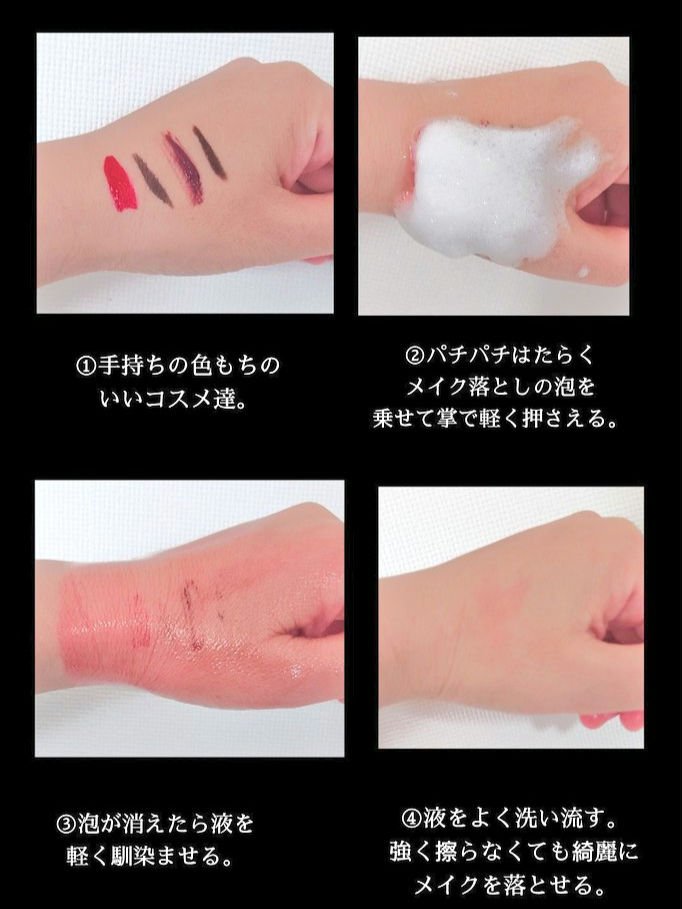 - パチパチと泡がはじけてメイクを浮かし落とすメイク落とし。“まさつレス’'な落とし方で持続ファンデ、ウォータープルーフUVまで落とします。 オイルフリー。 まつエクOK(※シアノアクリレート系のグルーを使用したまつ毛エクステンションに使えます)。 すすぎ後の洗顔はいりません。 素肌の時の洗顔料としても使えます。 ほのかなホワイトフローラルの香り。