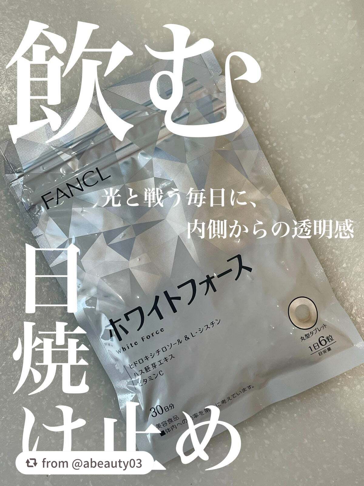 - ファンケル独自のヒドロキシチロソール&L-シスチンの組み合わせに加え、ハス胚芽エキスがアプローチ。内側から輝くような毎日をサポートします。 毎日コツコツ対策したい方に手軽な粒タイプ。 【1日の目安】 6粒 【ご注意】 ※妊娠・授乳中の方、お子様はお召し上がりにならないでください。