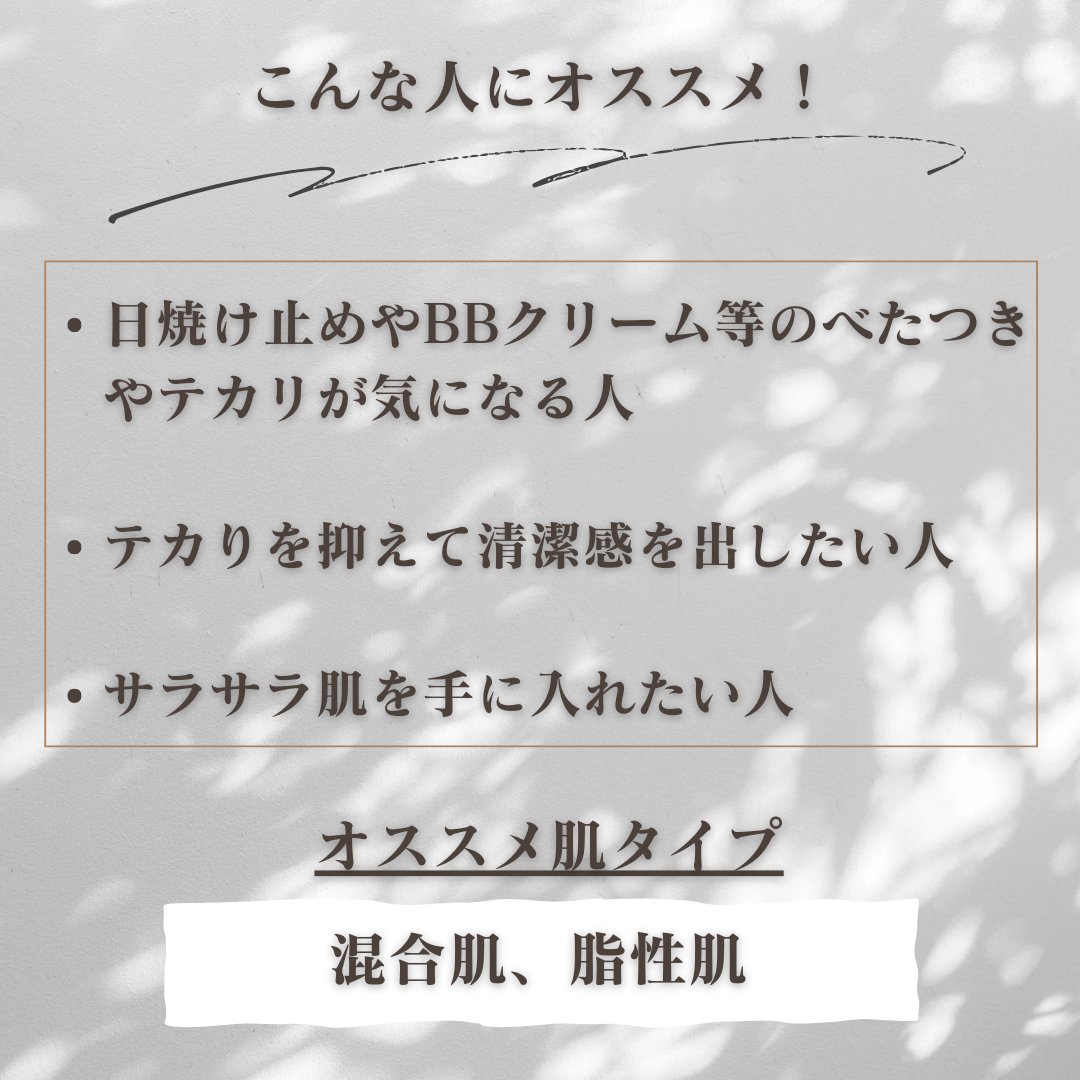 - 赤ちゃんのようなすべすべ肌を演出する皮脂コントロールパウダー 1. 皮脂コントロールパウダーで触れたくなるさらさら肌へ 皮脂吸着パウダー*¹とミネラル皮脂コントロールパウダー*²が過剰な皮脂を吸着し、触りたくなるすべすべ肌に仕上げます。超微粒子のパウダーで付け感ゼロの軽やかな付け心地。 2. 過剰な皮脂を吸着して肌トーンを補正し、メイクを長時間キープ 日中の肌のくすみの原因の1つである余分な皮脂を吸着することで肌をワントーン明るく補正*³。長時間ベースメイクが崩れにくく華やかな肌をキープします。 3. ポーチに入れたいスタイリッシュなパッケージ いつでも映えるスタイリッシュなデザイン、中身の見える半透明容器で快適にお使いいただけます。 4. こだわりのシンプルな処方 肌にマイルドな無添加*⁴処方にこだわり、クリーンな処方設計。 *¹ オクテニルコハク酸デンプンAl 、(ジメチコン/ビニルジメチコン)クロスポリマー *² シリカ、マイカ *³ メイクアップ効果 *⁴ 動物性原料、鉱物性油、パラベン、タルク、合成色素、合成香料、ポリアクリルアミド、イミダゾリジニルウレア、トリエタノールアミン、PEG系界面活性剤無配合