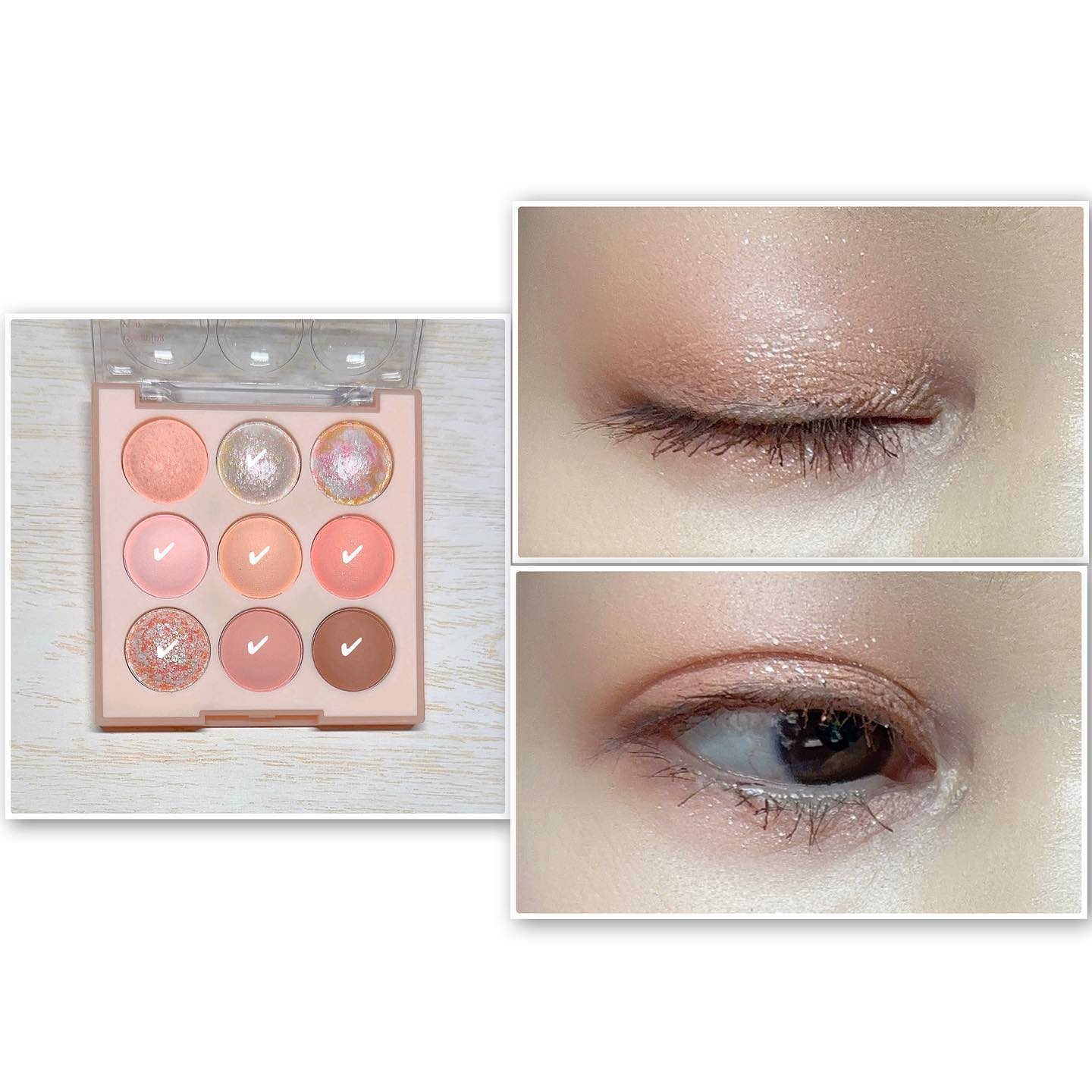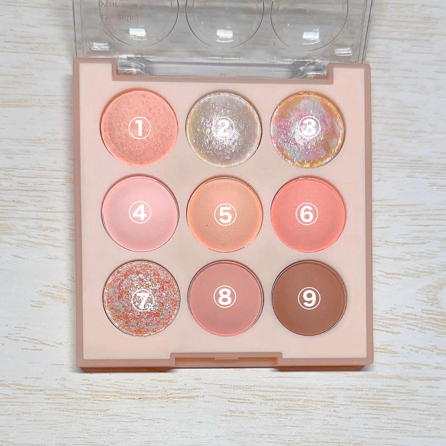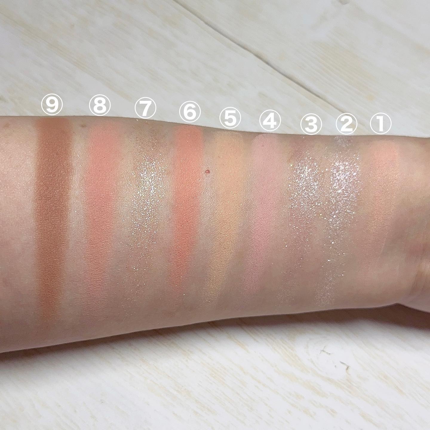 テクスチャーはサラサラだけど、飛び散るわけではなくて吸い付いてくる感じでした。 グリッターは、湿式のウェットさと押すとムニっとして、ちょっとゼリーテイストな気がします。ギラギラすぎなくて使いやすかったです。 ⑥はピンクも混ざっていてとても可愛い。アイスクリーム屋さんのストロベリーチーズケーキみたいな🍓これも、白すぎなくて肌馴染みの良い白系なので使いやすかったです。