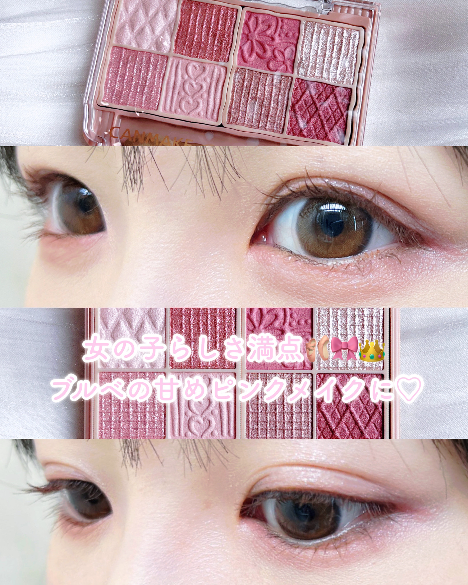 可愛くて好きなパレットです。右上の濃いピンクをメインに使いました。右下はラインに。ラメ具合も好きです。キャンメイクプティパレットアイズ03ミニョンヌリボン#キャンメイク#プティパレットアイズ#03ミニョンヌリボン#ミニョンヌリボン#ピンクメイ...