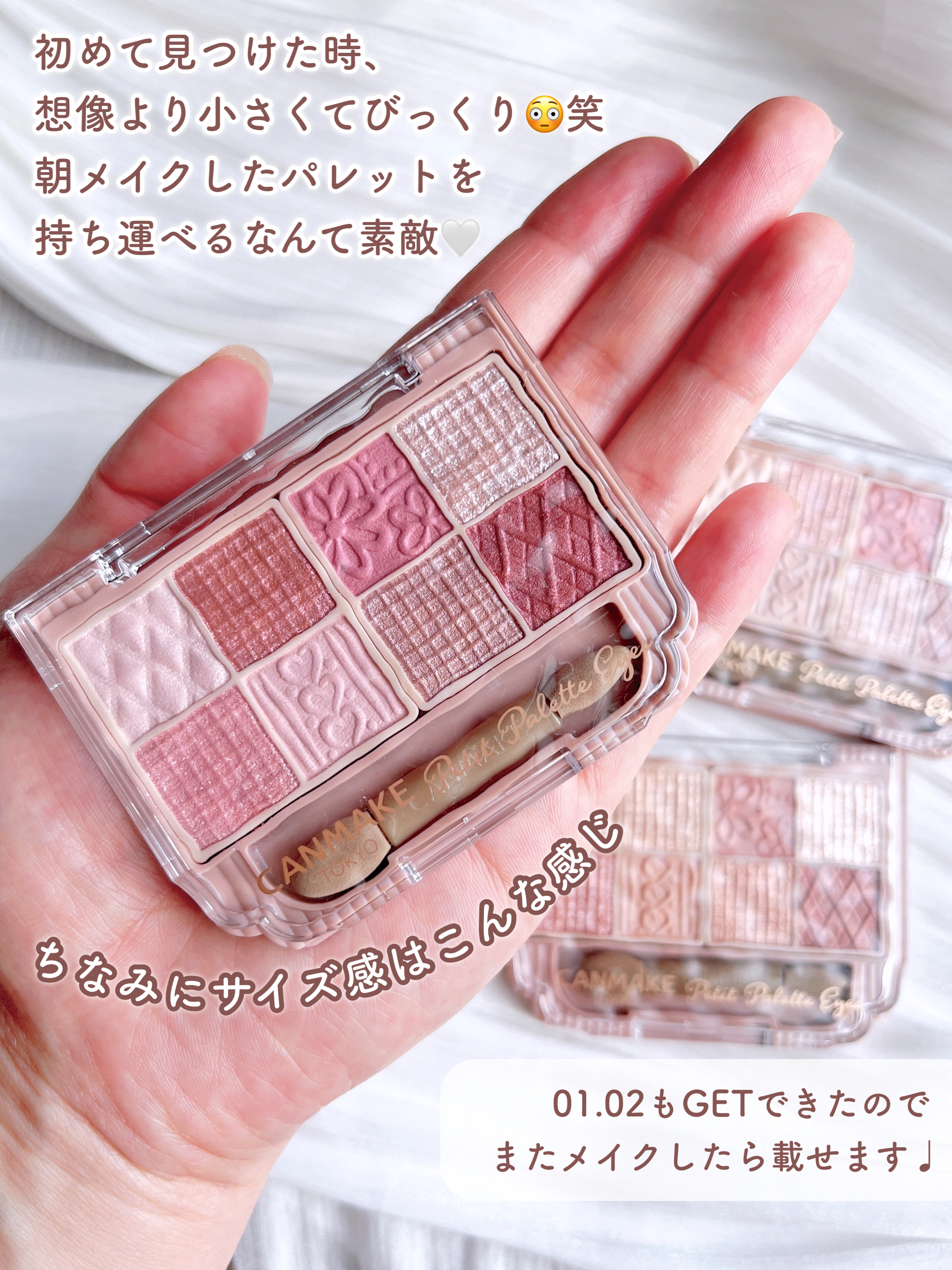 - 持ち歩ける多色パレットがキャンメイクから登場! 捨て色なしの8色入り&チップ付! 「持ち歩けること」や「外出先でもメイク直しができること」を重視した多色パレット。 持ち運びやすいサイズ感なのに、贅沢に8色入りです。 さらに便利なダブルエンドチップまで! マット×パール×ラメなど、組み合わせ方はあなたの自由! 自分好みのアイメイクを楽しめます。