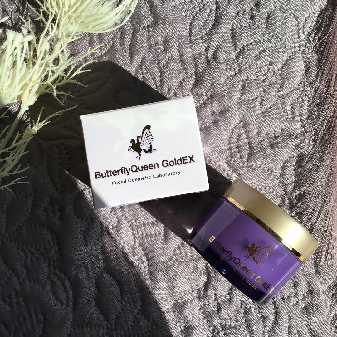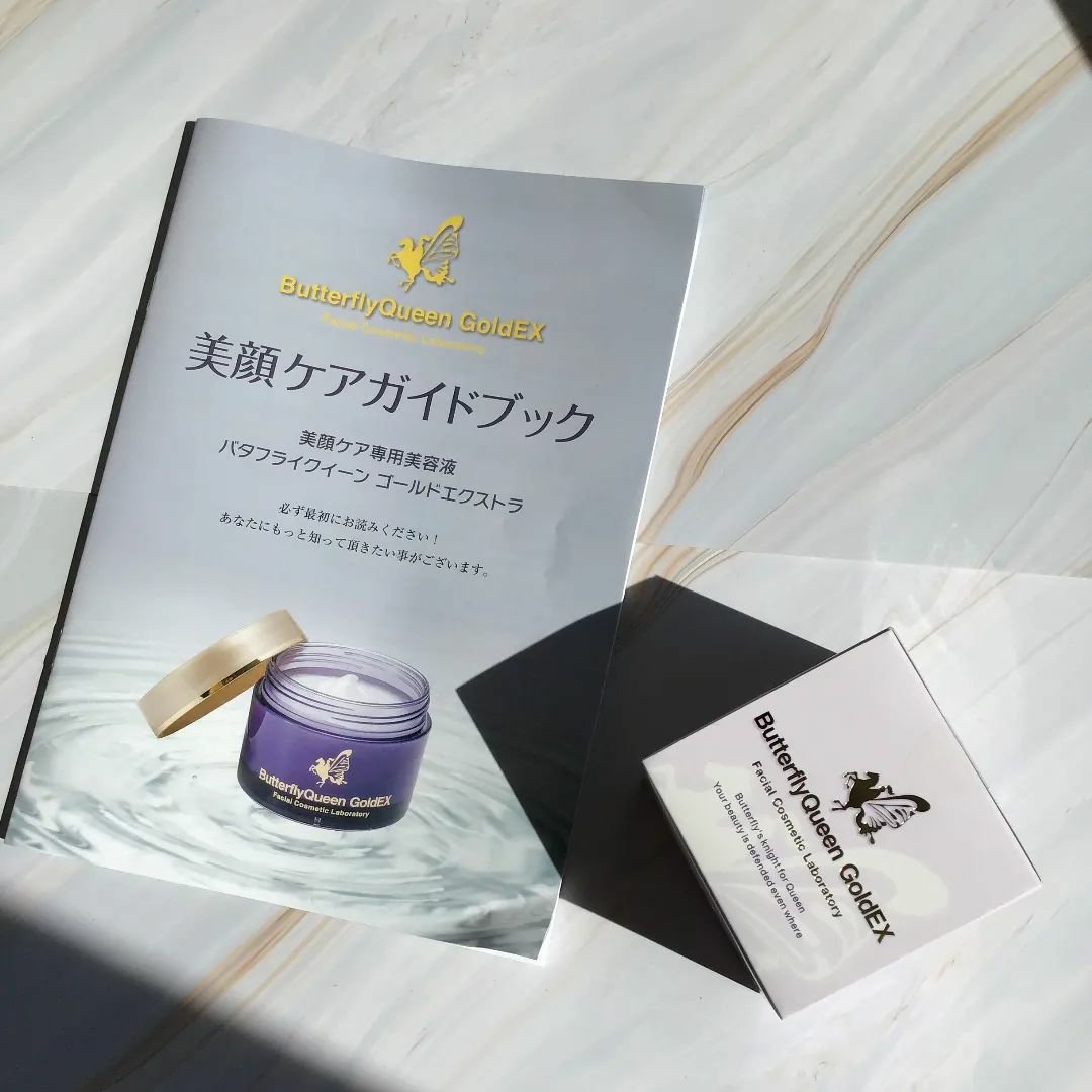 バタフライクイーン ゴールドエクストラは、顔のシワやたるみをケアするオールインワン美容液🌈 ウォーターベースのジェル美容液なので扱いやすいと感じました♥ バタフライクイーン ゴールドエクストラにはゴールデンコラゲニンが配合されています✨ ゴールデンコラゲニンはエイジングケアに効果を持つペプチドにナノサイズの金を結合させた成分 また、プラチナナノコロイドが配合されています♥ さらにダイヤモンドSIRT(サート)が配合されています。エイジングケアをサポートするペプチドにナノサイズのダイヤモンドを結合した成分であるダイヤモンドSIRT(サート)はダイヤモンドと結合する事によって、ベプチドが肌へアプローチします🌈 ケアは1日2分の時短ケアで本格的なケアができるのがよいと思いました✨