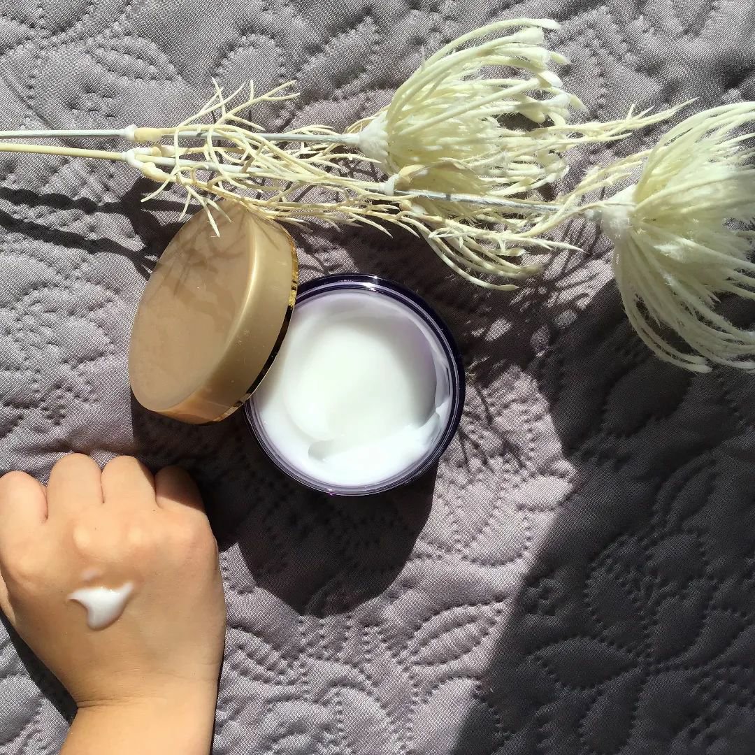 クリームのお色にビックリ( ゚Д゚) キレイなレモン色 こんな綺麗なお色のクリームは 初めてかもしれません。 見た目も可愛く色も好みでした。 しっとりしたクリームでとても 良く伸びました。 つけた後もしっとりと乾燥気味の肌もかなり潤っていました。