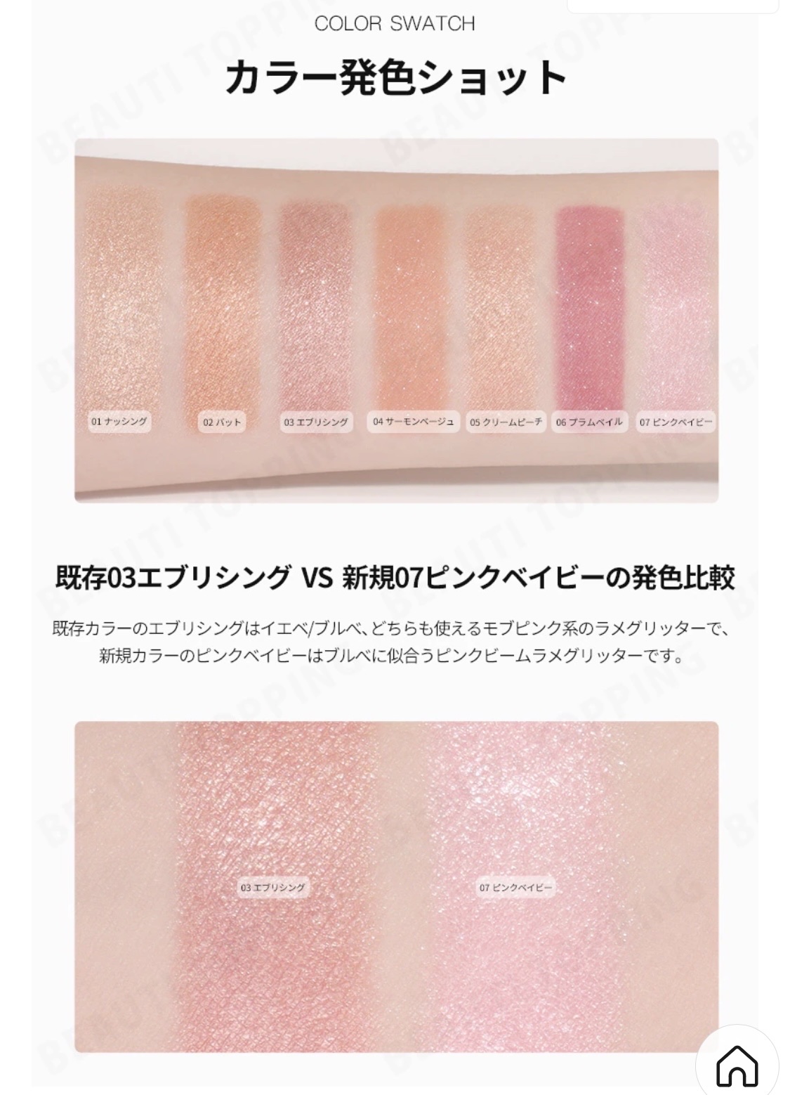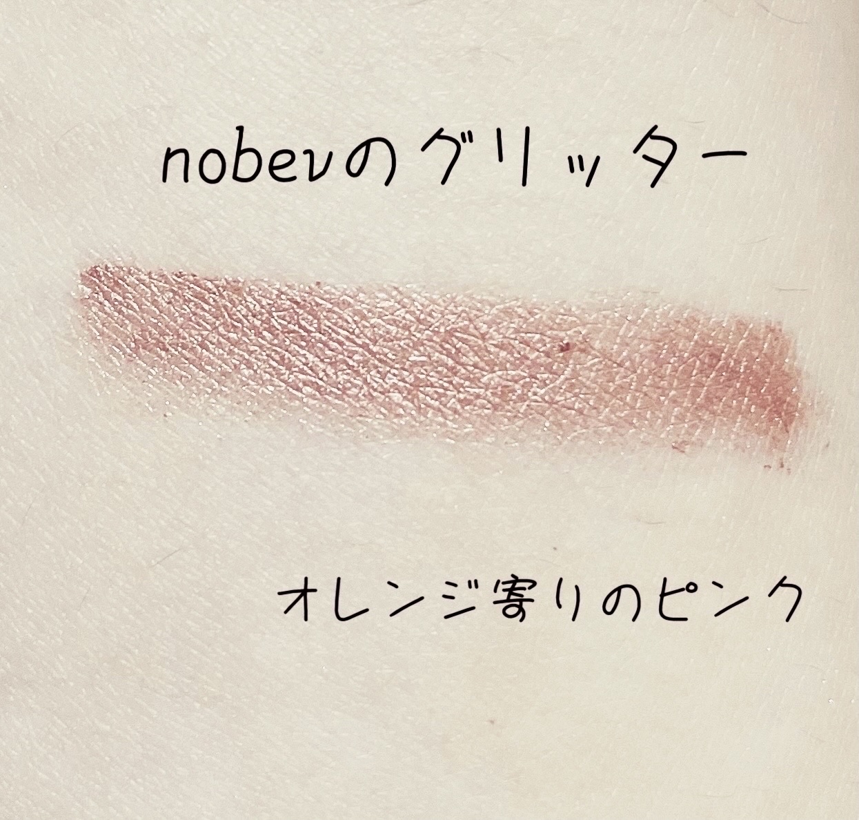 nobevの涙袋ペンシルについてレビューしていきたいと思います💕 Q10で人気だったのとコンシーラーとグリッターが一体化して便利だと思ったので購入しました。 私が購入したのは03になります。 公式ではウォームトーン、クールトーン両方の方が使えるお色になります。 nobev: 固め CANMAKE: 柔らかい nobev: 黄色味のある色 CANMAKE: ピンク系の淡い色 nobev > CANMAKE nobevはテクスチャーが硬いのでキャンメイクの様にスルスルかけないし乾燥してしまう。 実際はオレンジ寄りのローズゴールドでした。 なので私の顔では涙袋が悪目立ちしてしまいました😢 以上から個人的にはCANMAKEに軍配が上がりました。 この03はどちらかと言えばウォームトーンの方の方が似合うのではないかと思いました。