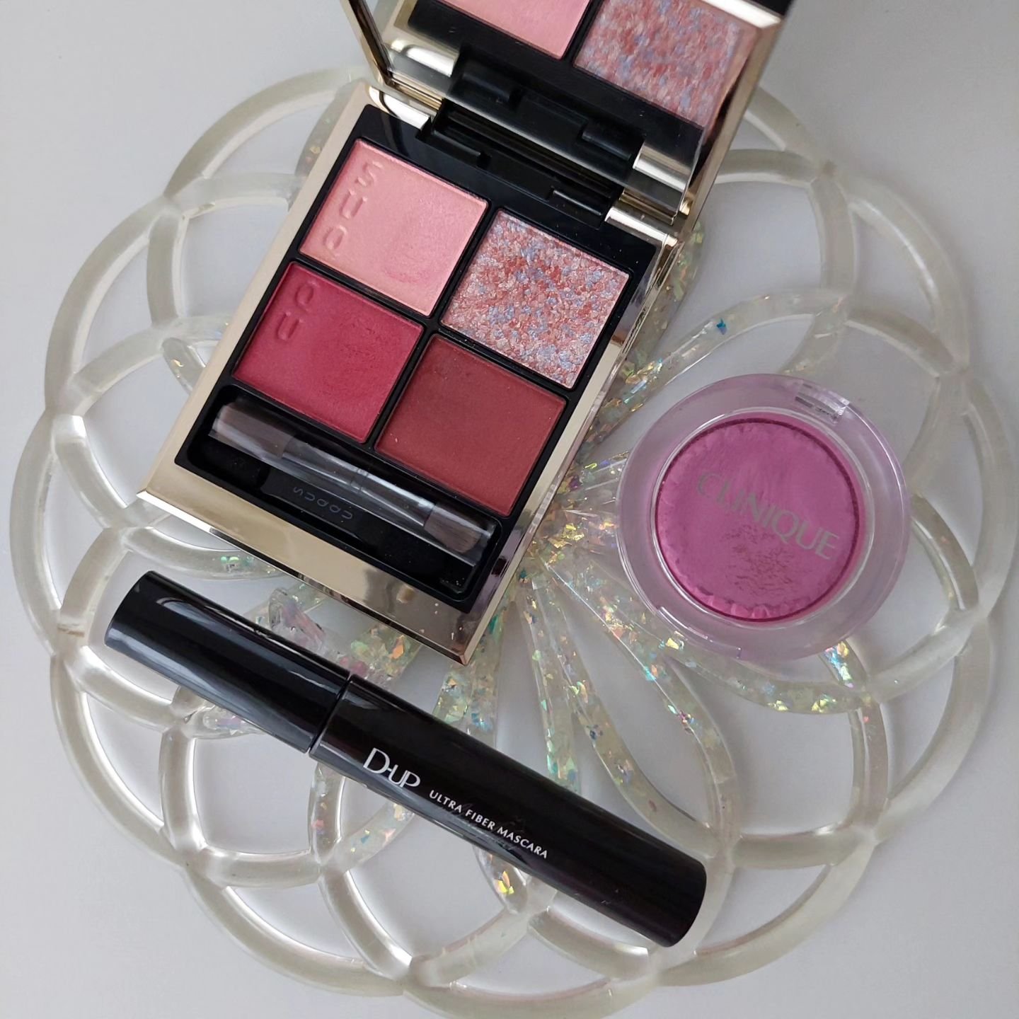 ベースに仕込むことで、パレットのカラーたちを引き立ててくれて発色がきれいに出る…!感動♡ 私の瞼ではピンクみが強めに出るんだけど、そのおかげでコートカラーのラメと締め色が映えて美しい🥹🩷 これ、136のパレットにも仕込んでみたい!!