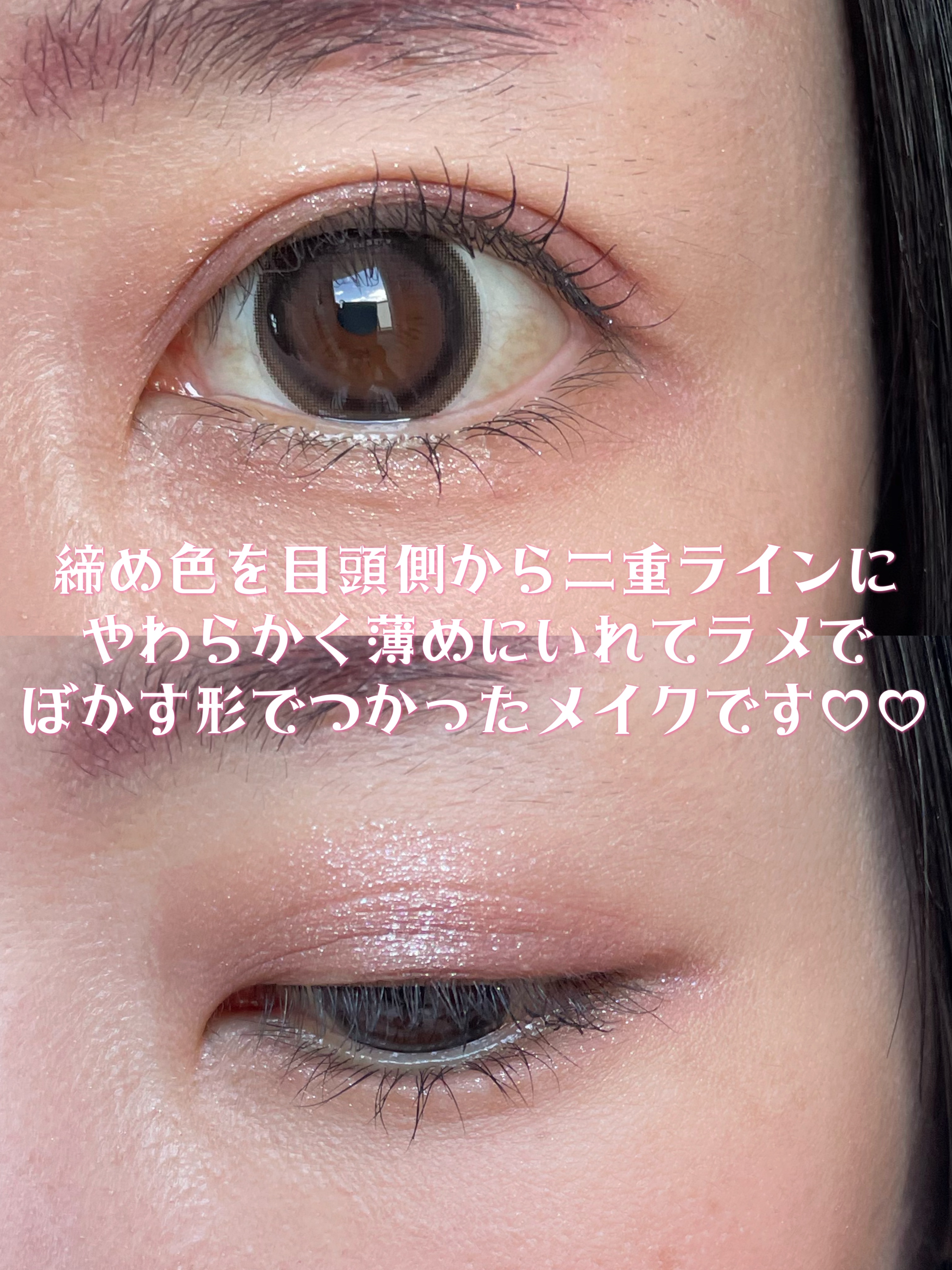 右上の淡いカラーに左上のラメを重ねました😊 さらに右下オレンジを重ねて、ブラウンをライナーにつかいました✨️ 2個目は、電話予約ができたのでバレンタイン日発売のパレットをGETする予定です🫶