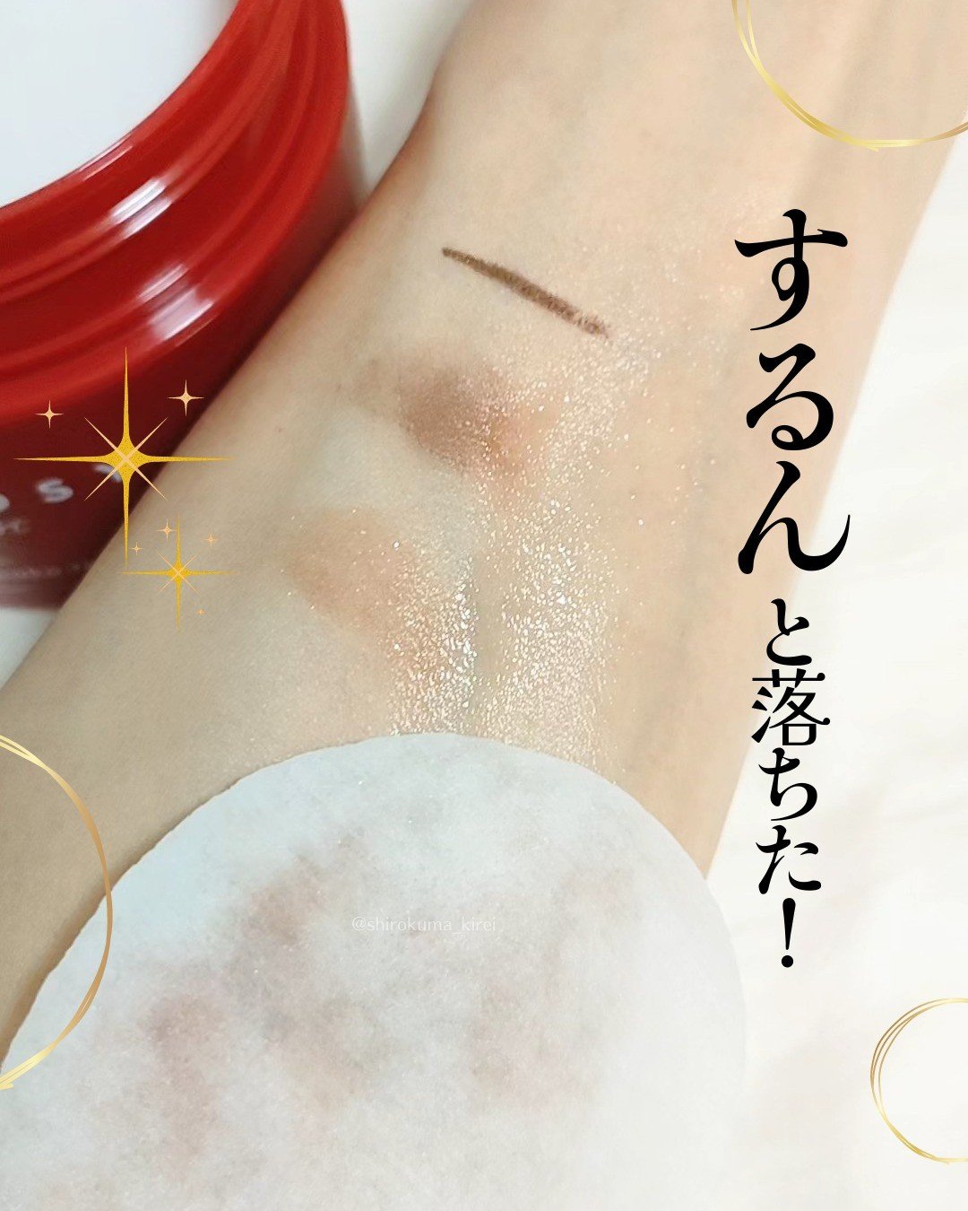 - 今までゴシゴシ擦って落としていたアイメイクが、10秒※1 で一発落ち!摩擦レスな使い心地で落とせる、新感覚のリムーバーシートです。エンボス加工(デコボコな加工)のシートでラメも奇麗に絡めとり、たっぷりひたひたな液でお肌も守りながら、落ちにくいアイメイクをするっとオフしてくれます。保湿成分として王様いちごの乳酸菌※2 が配合されており、開けた瞬間のいちごの香りにも癒されます。 ※1:お手入れ時間の目安 ※2:保湿成分:乳酸桿菌