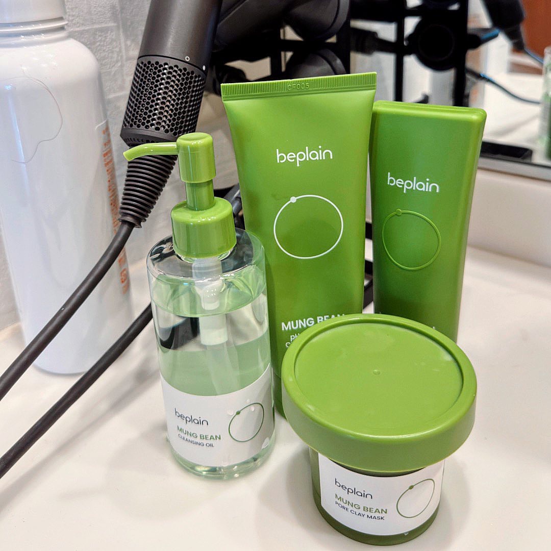 大分前のメガ割購入品です🤗✨beplain緑豆クレンジングオイル緑豆毛穴クレイパック緑豆弱酸性洗顔フォーム緑豆ミルクピーリングジェル緑豆バランシングトナー サンプルサイズ最近ようやく開封して使い始めました😊毛穴の汚れがスッキリする感じで、お肌...