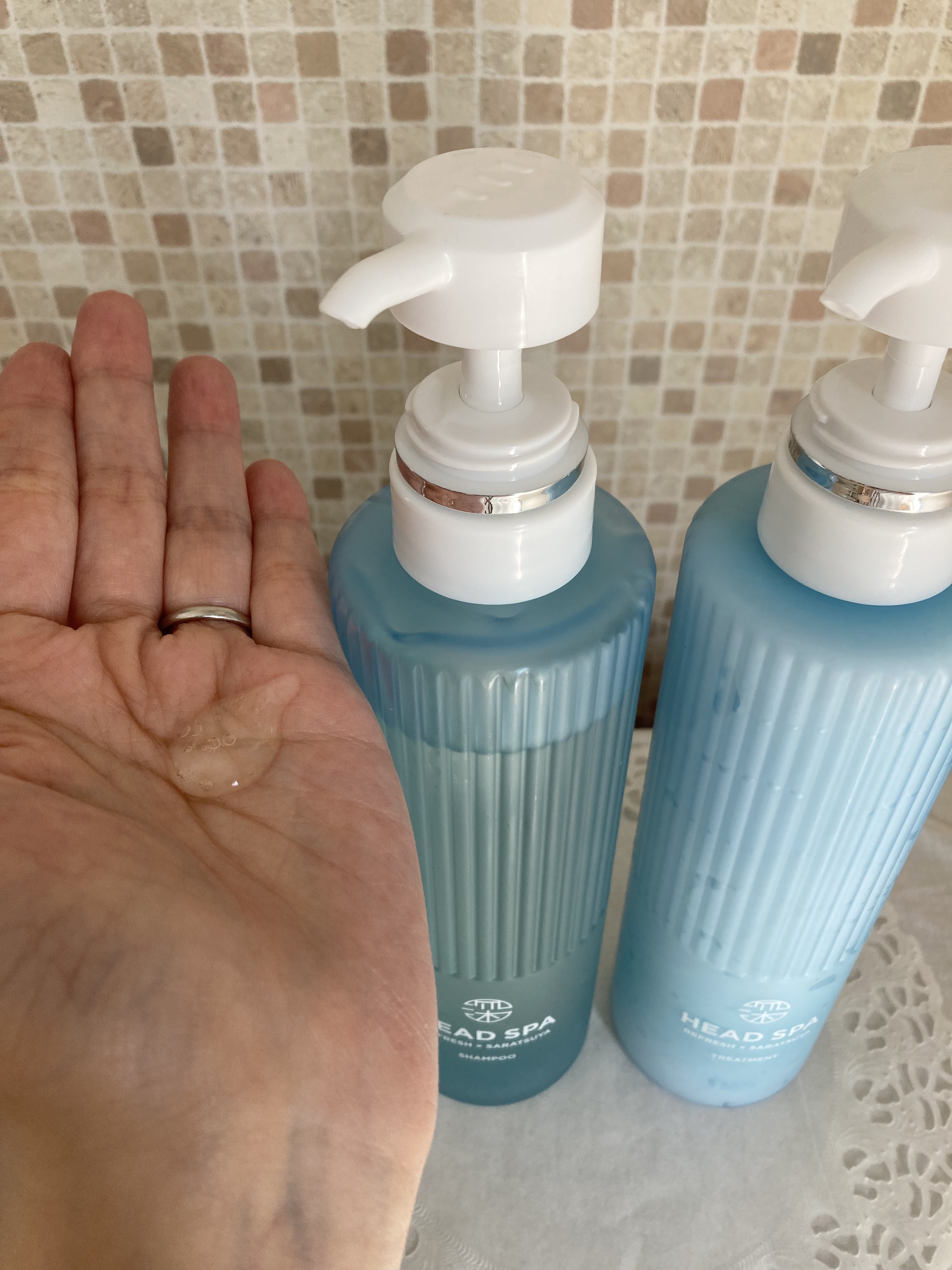ヘッドスパ帰りのような仕上がりを提供するプレミアムなh&sのシリーズ。 スパリセット処方が地肌と髪のすみずみまで浸透し、毛穴の奥の皮脂や汚れをすっきりやさしく洗い流してくれるそう。 爽やかな水色のボトルが可愛い🩵 シャンプーはびよーんととろみのあるテクスチャー。