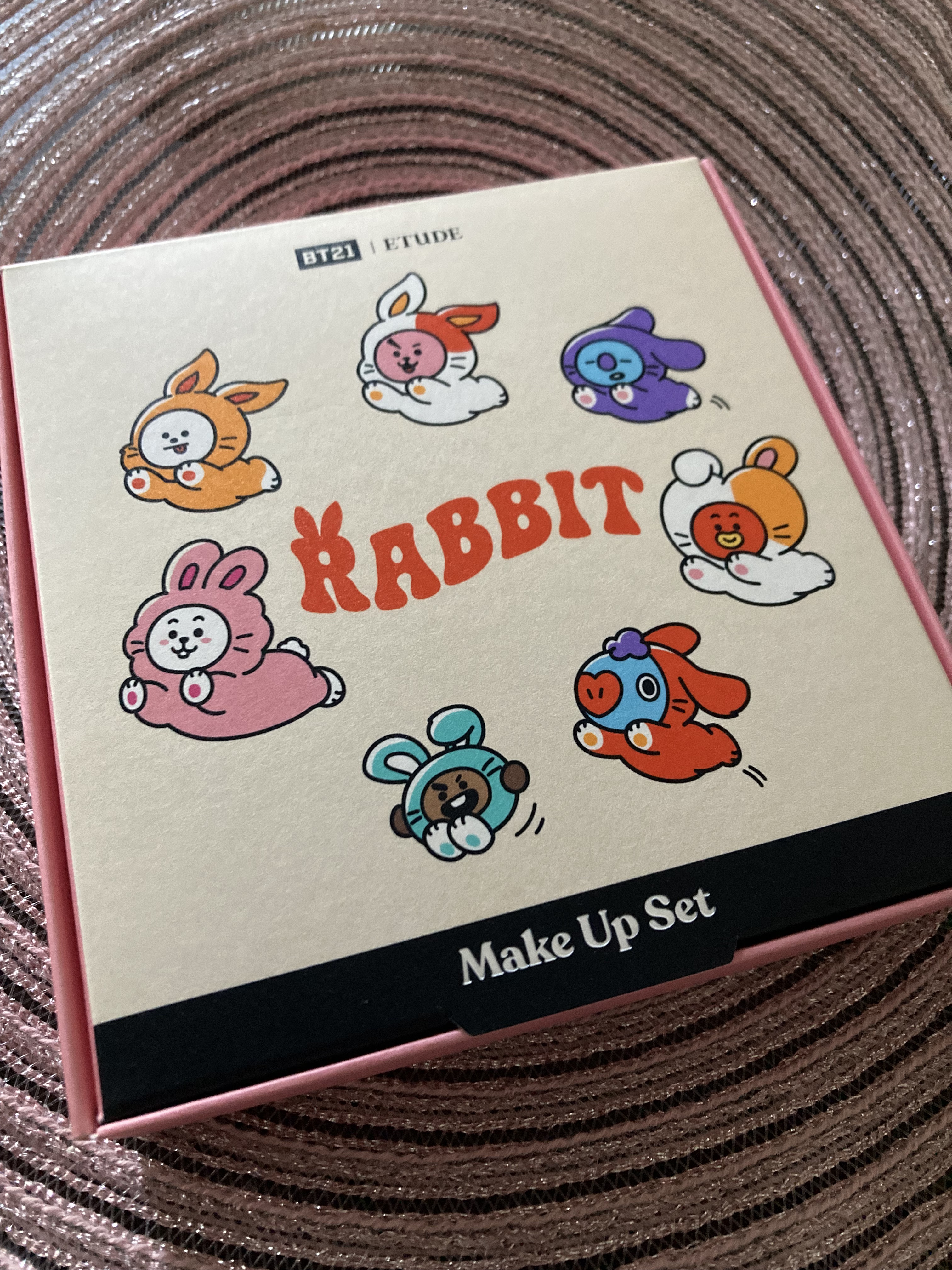 ETUDE プレイカラーアイズミニ BT21コラボの限定色 COOKYオントップ&ニューイヤーパーティー 今回は、ピンクとオレンジを混ぜて甘すぎず、ハツラツすぎない柔らかく優しい目元に。 粉質もよくてふわっと柔らかい発色。mudeはボリュームアップのブラウンで柔らかくふんわりした目元を意識して、アイライナーもグレージュっぽい色味でごりごりに濃くならんように意識。