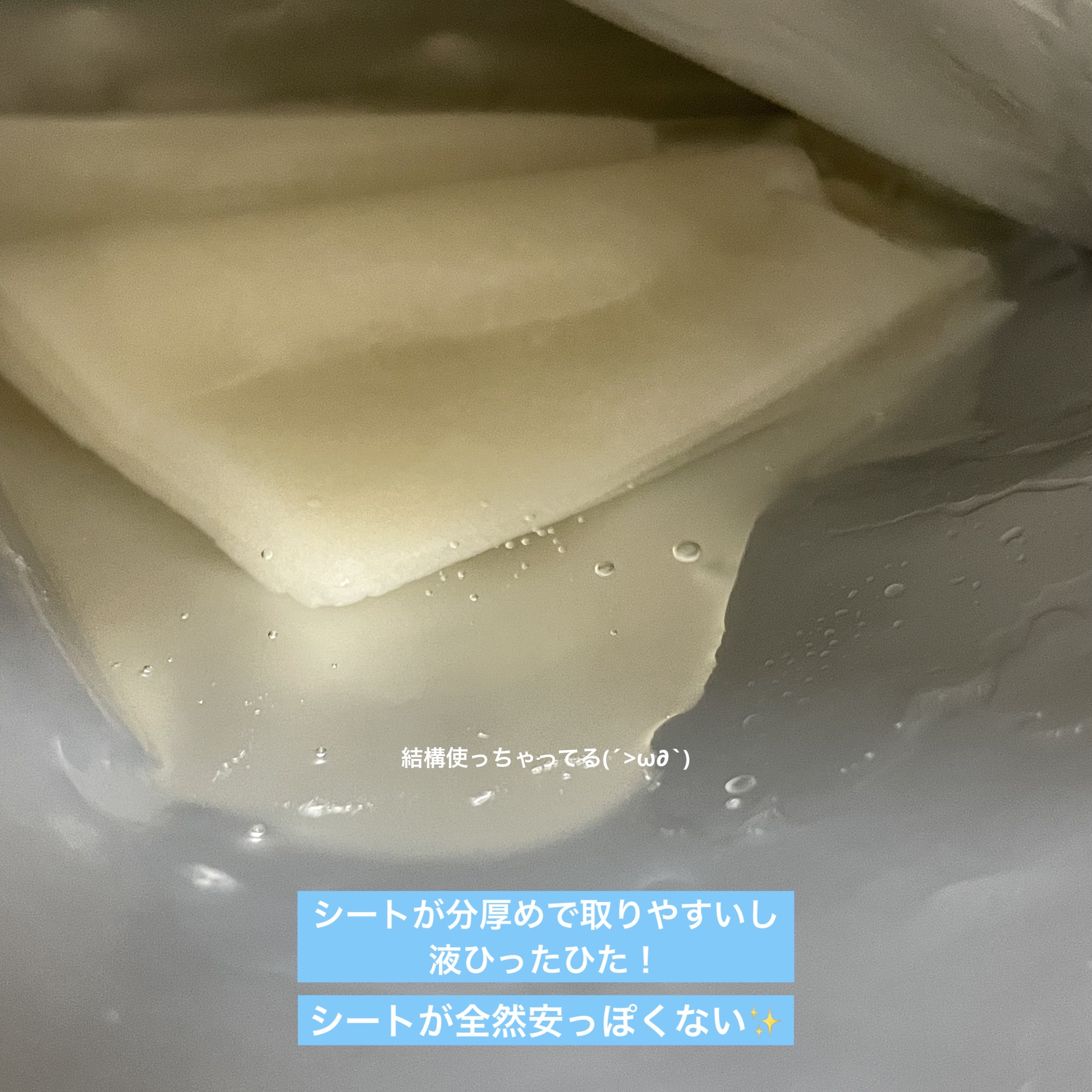 | 美容液がたっぷりひたひたに染み込んでいて、みずみずしくしっとりした使用感です! | 詳細を見る |