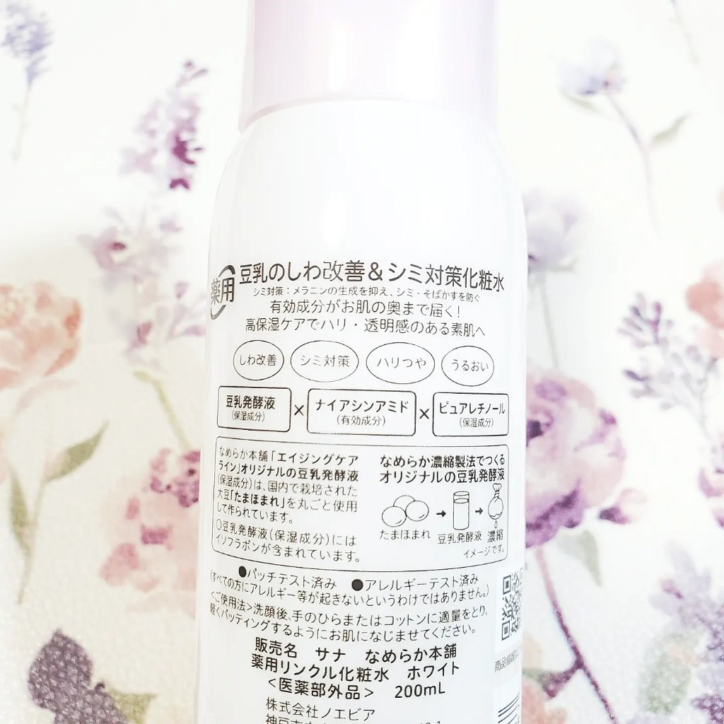 豆乳のスキンケア用品と言えば、なめらか本舗♡薬用しわ改善・シミ対策(※)乳液「薬用リンクル乳液ホワイト」国産大豆たまほまれを使用していて、豆乳発酵液(保湿成分)、ナイアシンアミド(有効成分)を配合✨肌の保湿が足りてないとハリツヤ不足にもなるか...