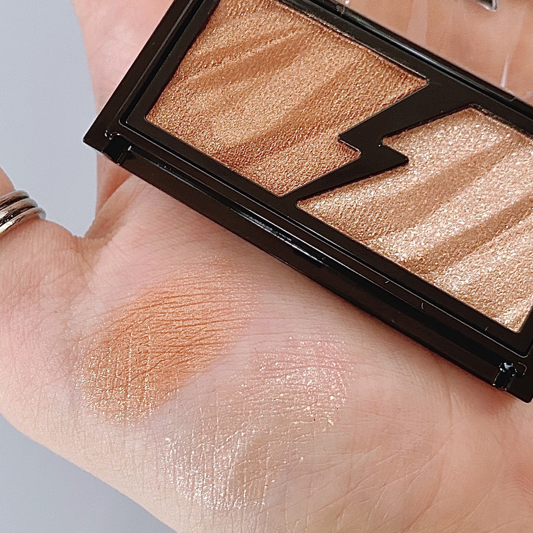 - 質感の違う2つの輝きで火花がクラッシュしたような発光感のある目元印象をつくるアイシャドウ。 まぶたにピタッと密着して、大粒ラメも落ちにくい処方設計。 繊細なカラーパールがきらめくエレクトリカルカラーと存在感のある大粒グリッターでまぶしい輝きを演出するフラッシュグリッターの2つの質感を掛け合わせて、輝き自由自在。 目元以外にも頬や鼻筋のハイライトに使える。