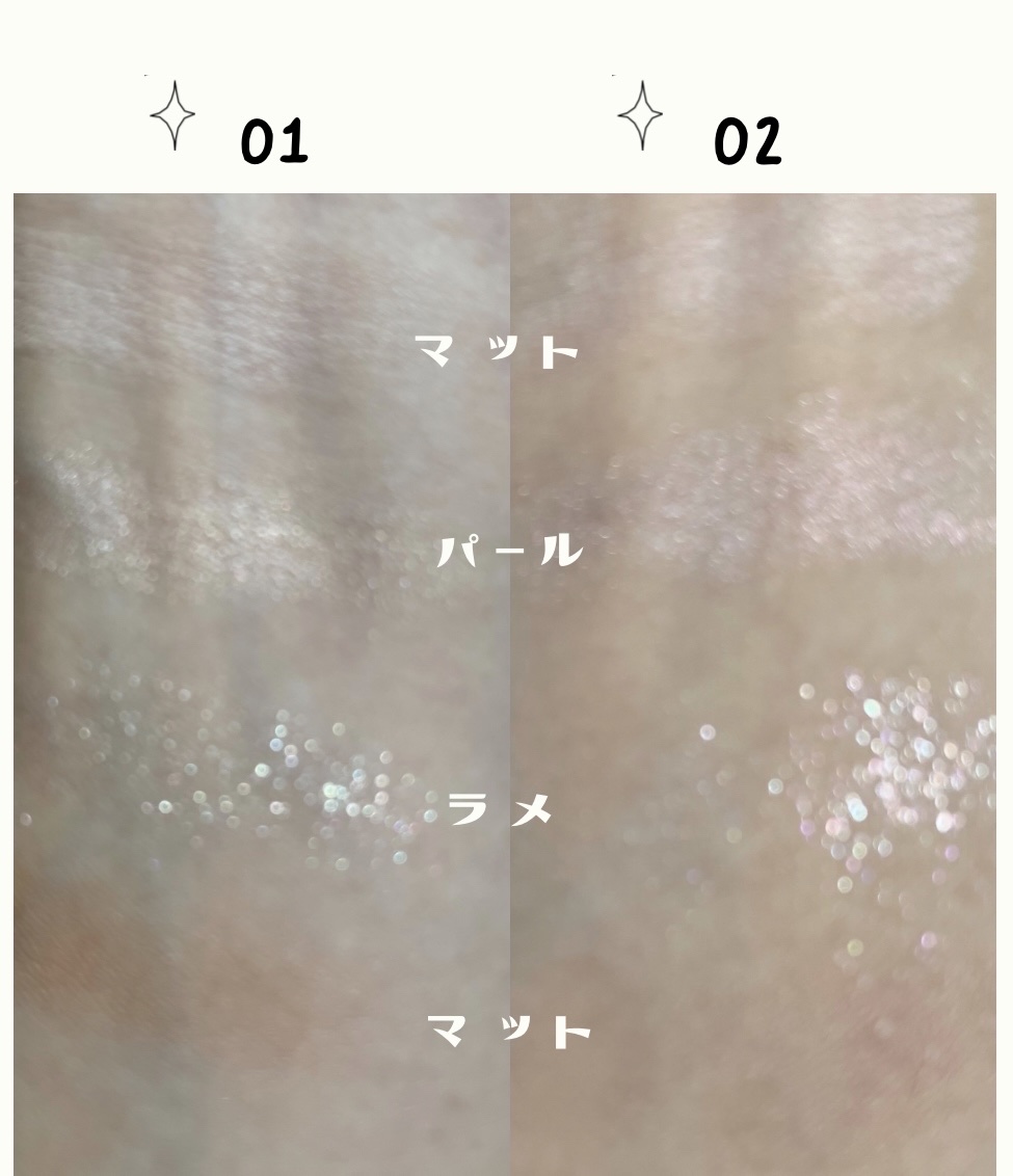 - マット・パール・ラメ入りで3パターンの涙袋が作れる 涙袋用アイシャドウパレット 涙袋用に3色、涙袋の影用に1色がセットされた涙袋用のアイシャドウパレットです。 その日の気分やTPOに合わせて選んでみてくださいね! マットは透け感があり目元のシワが気になりにくく、 パールは繊細で透明感のあるツヤっとした仕上がりに、 ラメはキラキラと輝く透け発色です。 涙袋の影用の「血色影カラー」は、影寄りの色なのに血色感もあって目元が暗くならない パウダーだからこそできた絶妙な色味なんです!