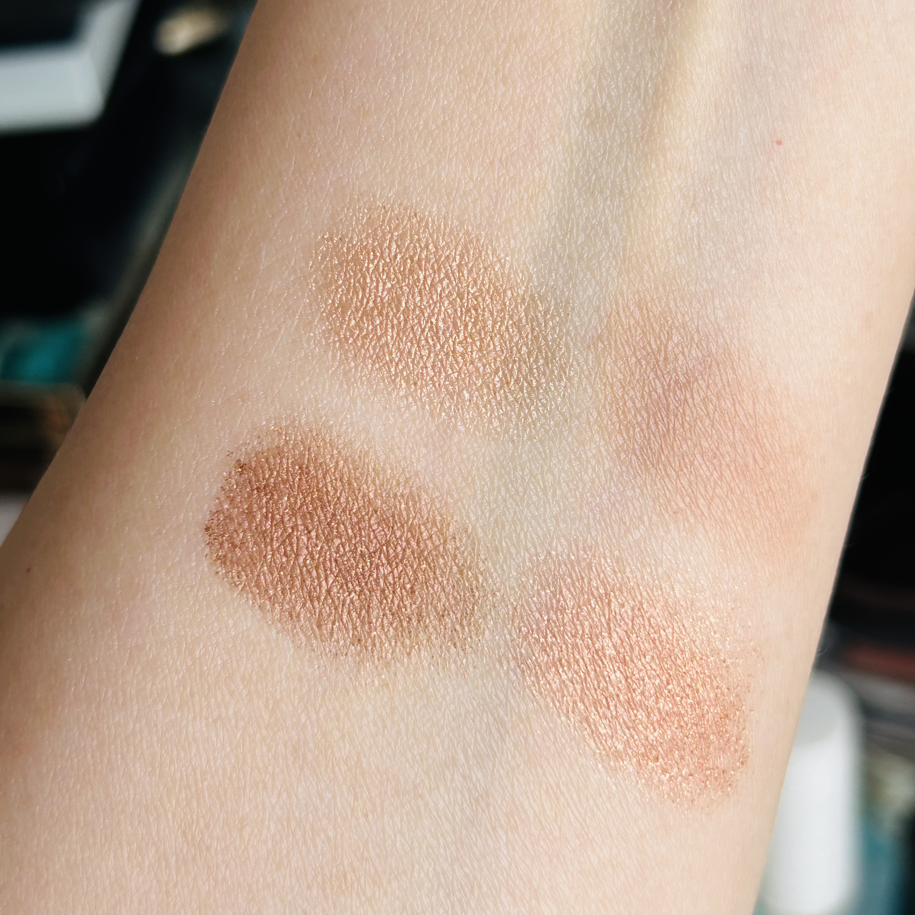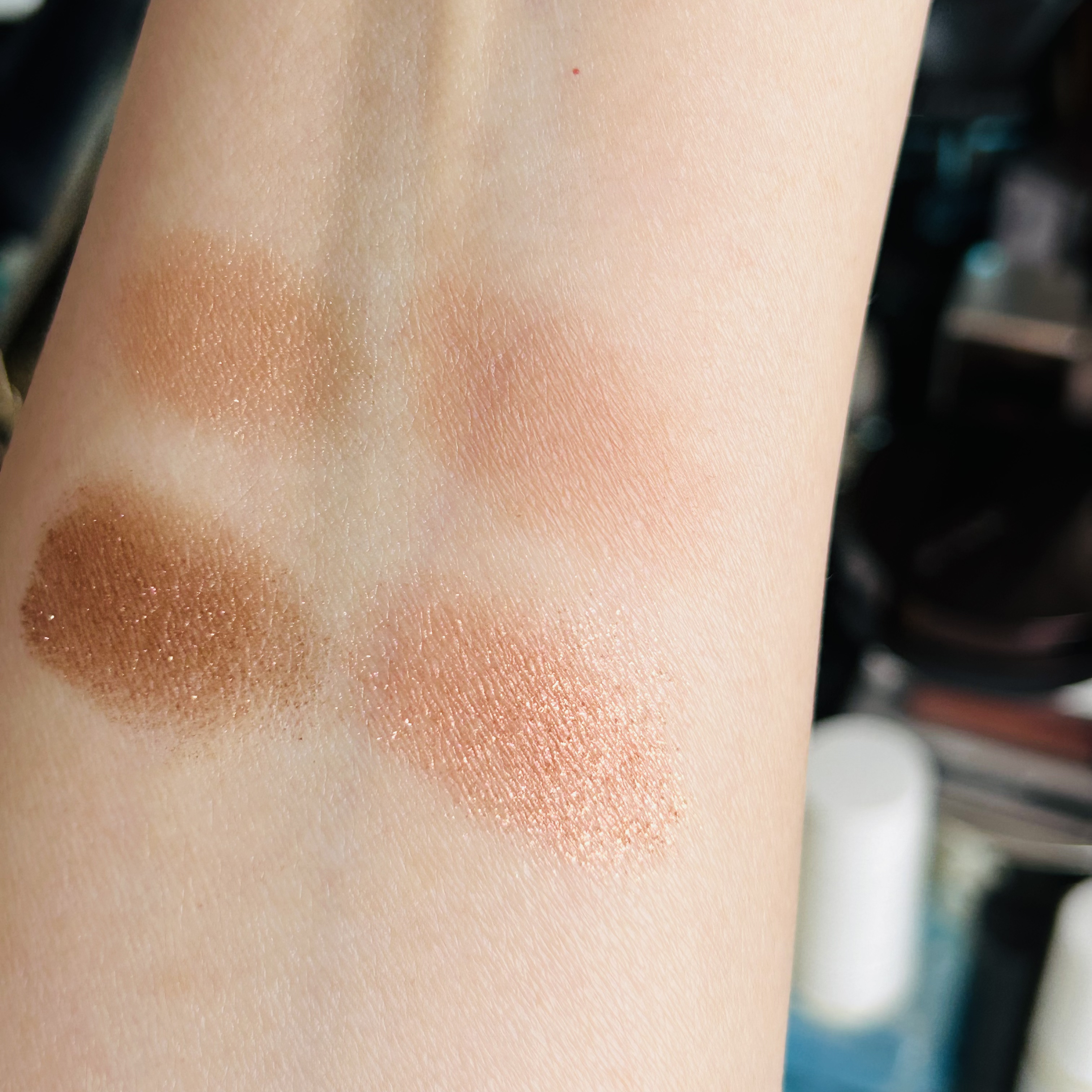 これは可愛いー!✨✨ミシャグリッタープリズムシャドウホリデー限定と、PLAZA、MINiPLA限定カラー🎄✨coyuちゃん、情報ありがとう💕ホリデー限定の、GEX02くすみピンクベース×グリーン、ブルーグリッターGEX01メタルベージュ×ゴー...