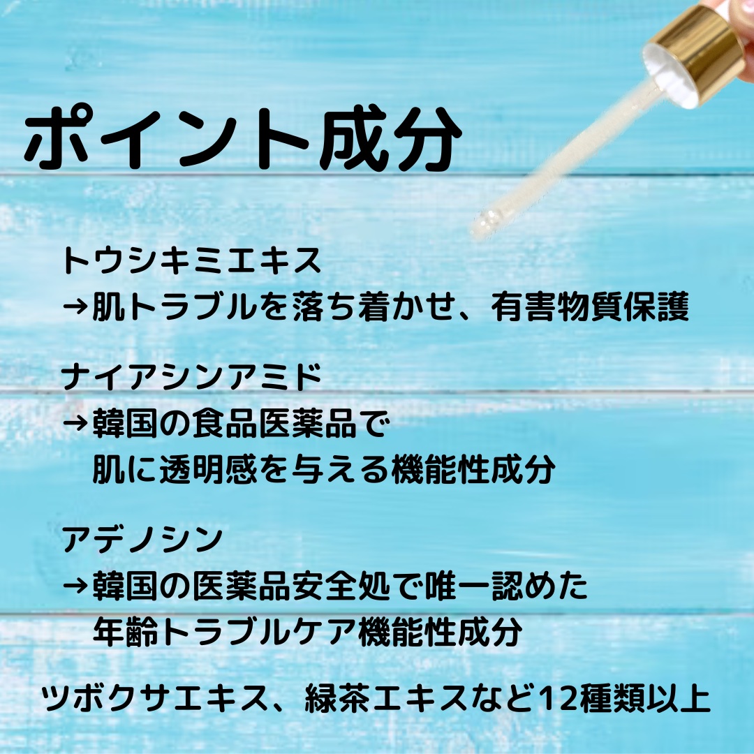 - 8か月間20回以上修正し完成した水光アンプル。 保湿、うるおい、肌なじみ、持続力などすべてにこだわったアンプル。シワの対策、美白機能性コスメでべたつかず塗った瞬間にスッと肌になじみ、24時間保湿を保ちます。