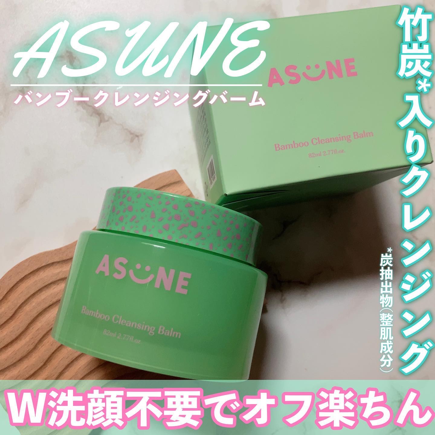 ★ASUNEバンブークレンジングバーム★緑色のかわいいパッケージ!W洗顔不要のクレンジングバーム開けるとスパチュラ付きの中蓋があって白色のバームが出現スパチュラがすっと入ってなめからにすくえる肌にバームを広げると《バーム>オイル(メイク落とし...