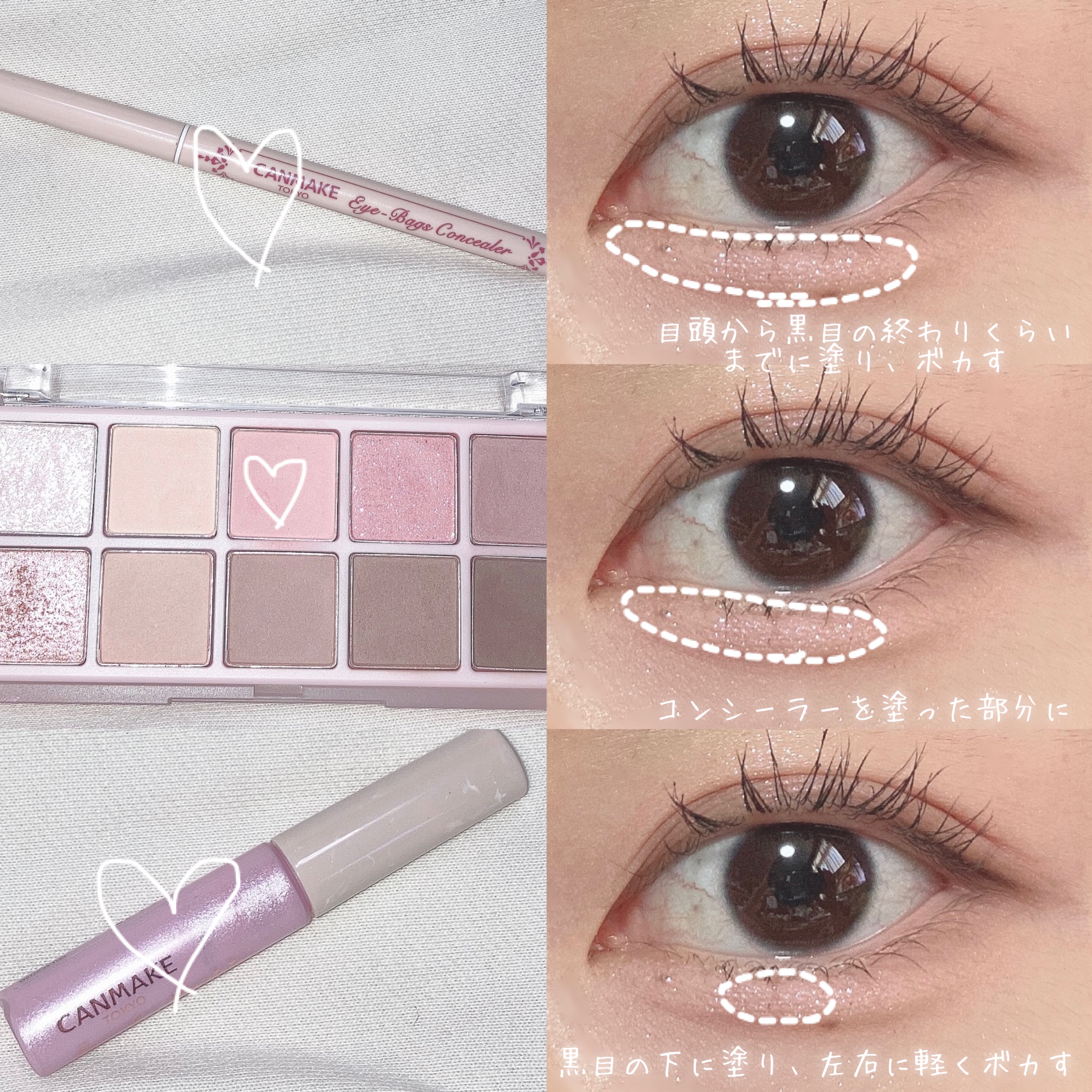 アイシャドウ👀・CLIOプロ アイ パレット01SIMPLY PINK グリッター✨・PERIPERAデュオ ポケット グリッター シャドウ03SALTED SUGARPLUM 涙袋のコンシーラー👧・キャンメイクカラーミキシングコンシーラーオレンジベージュ マスカラ💇♀️・rom&ndハンオールフィックスマスカラL02LONG ASH アイライン✏️・キャンメイククリーミータッチライナーダークブラウン・CEZANNE極細アイライナーEX20ブラウン