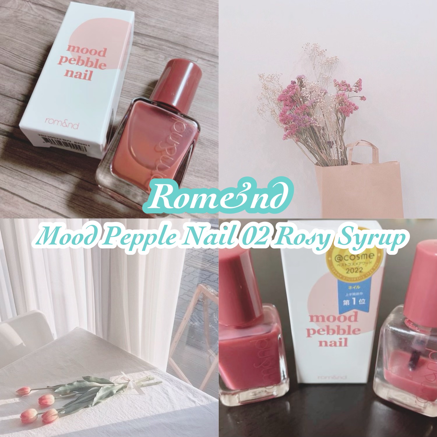 - 指先に玉石のような、ならかな光沢をとどめる。塗った瞬間から綺麗なツヤと光沢を維持し、重ねて塗っても透き通ったカラー感を鮮やかにとどめる、素早い乾燥力のナチュラルカラーネイル。「ロムアンド」の次世代型ネイルです。