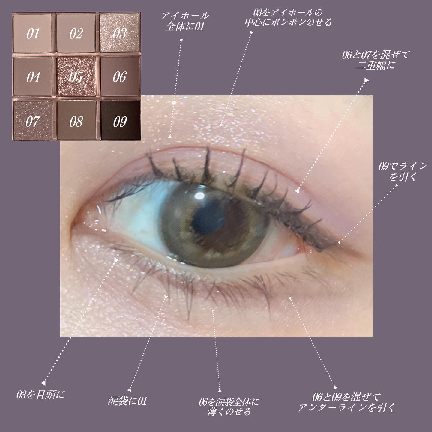 これは可愛かった!!!どんどん使いたいと思った🥺感動した……!! スモーキーだし、くすみもあるんだけど色に透明感もあるのよ……、なんというかあんまり白くない。だからとっても使いやすかった!! 04 Pastel Cotton candyはミュートカラーだけど 先に書いたように、白みが強すぎないから使いやすいカラー🩷ラメがキラキラで可愛い🥰 05 Night Outは新色✨ スモーキーなカラーが構成されているんだけど、そこまで辛すぎず、柔らかなカラーやラメもあって可愛い🩷キリッと仕上げたい日に特におすすめ🎶