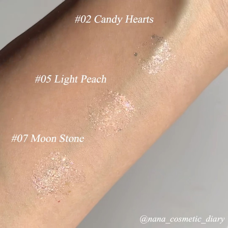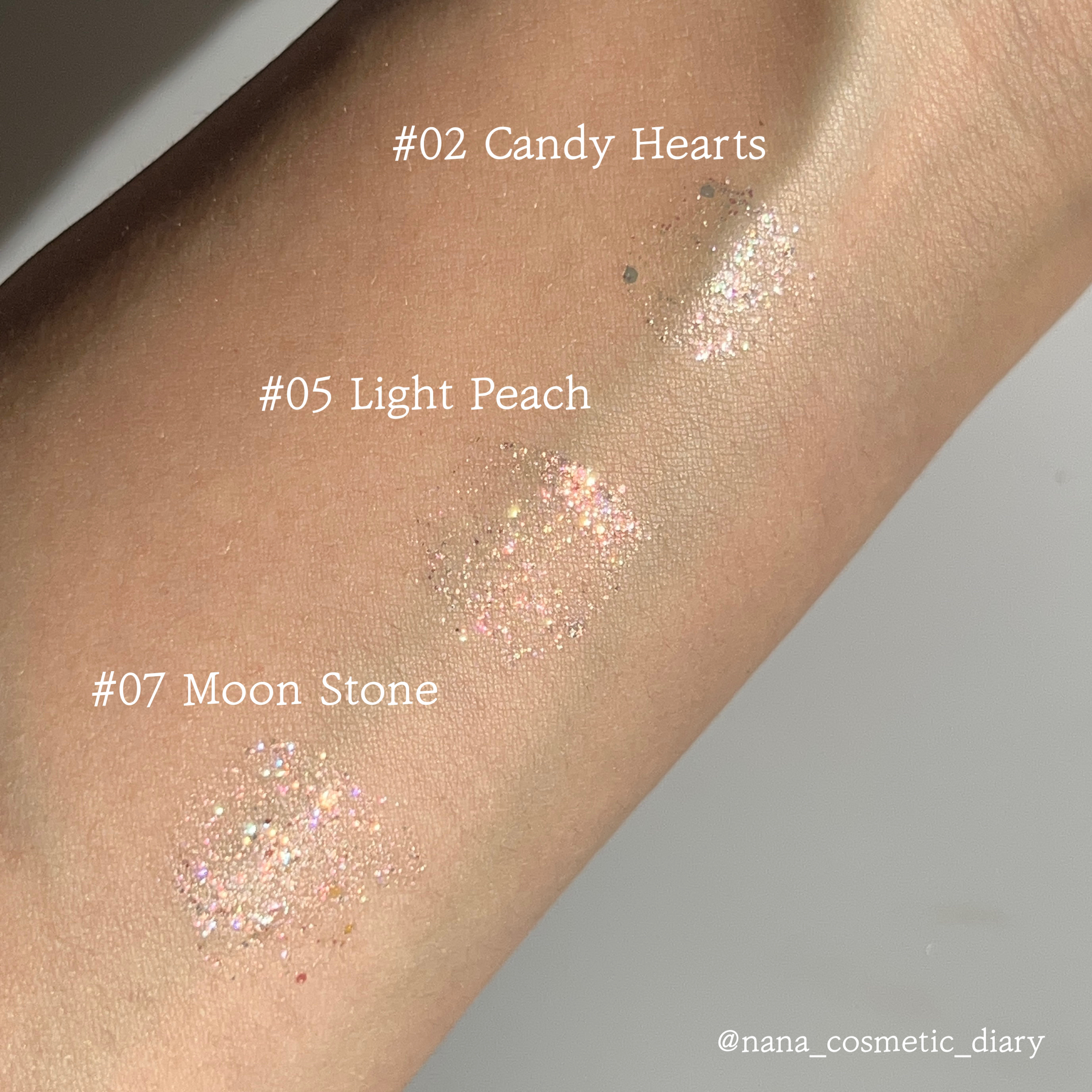 dasiqueStarlit Jewel Liquid Glitter新作が出るたびに可愛すぎると話題になるデイジークから、グリッターが登場!✨ 適度に粘度があって、つけた後もパサパサにならず、ピタッと密着する感じがあってよかったです✨ 筆はシリコンの一本筆タイプなので、筆が乾燥してガビガビにならないのも嬉しいポイント🙆🏻♀️ 思ったよりもラメが細かく、デイリー使いにも使いやすかったです!✨ 大きいラメは負担な大人の方にもオススメ😌🫧 個人的には02番のラメが青っぽくて、肌にのせた時目立つので、ポイント使いしたい方にはオススメです!(02番はイエベブルベ問わず使用できるカラー🩵) 05番は、1番肌馴染みが良く、どんなメイクにも合いました✊ 07番は、見た目はピンクオレンジの色が強すぎるかな…?と思いましたが、実際につけるとそこまで色味は気になりませんでした☺️ 涙袋のベースのカラーをオレンジやピンク系にすると統一感があってよりかわいく仕上がります🫶