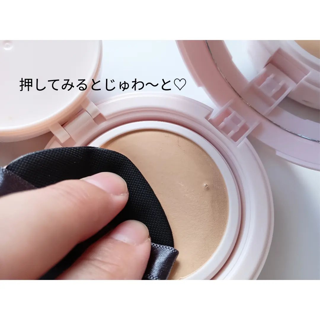 こちらはUVケアも◎ セッティングも簡単に装着できます😁 このブラック色したシンプルデザインの容器も素敵ですよね♡ パフにトントン馴染ませて肌にのせて みると少ししか取っていないのに、つきがよいですね。みずみずしいテクスチャです。 トントンなじませて伸ばしていくと 厚塗り感を感じさせない使用感です。 パフには、ほんの少しつけて内側から外にかけてポンポンと伸ばしていくのが ポイント。 つい、クッションファンデはたっぷりに なっちゃうけどほんの少しで良い◎ そうするとむらなく均一に肌にのせる ことができるね🥺